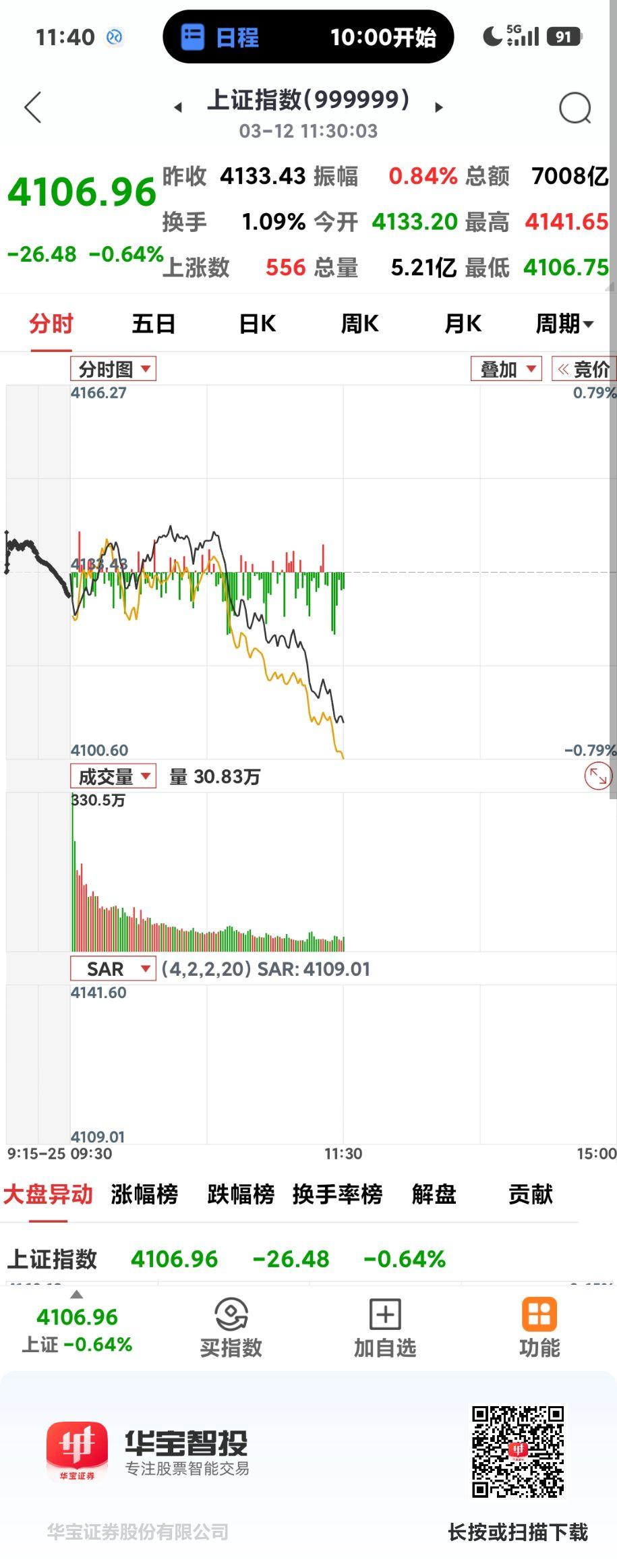 沪指跳水 上午大盘平开一度翻红到4141.65点, 收盘已跌至4106点,跌幅26.48点。电力,煤化工,能源领涨两市,下午看会否破4100点?