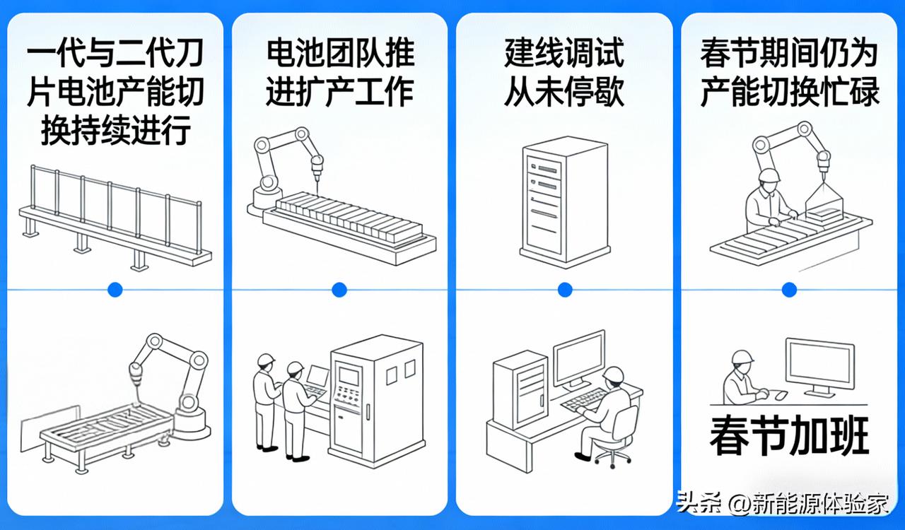 比亚迪一代和二代刀片电池的产能切换目前仍在进行中。自第一代刀片电池发布后,电池团队便持续推进扩产工作,建线、调试从未停歇,工作量极大,就连春节期间也在为产能切换忙碌。 2020年初代刀片电池横空出世后订单有多猛,现在产能切换就有多拼!爷青回!