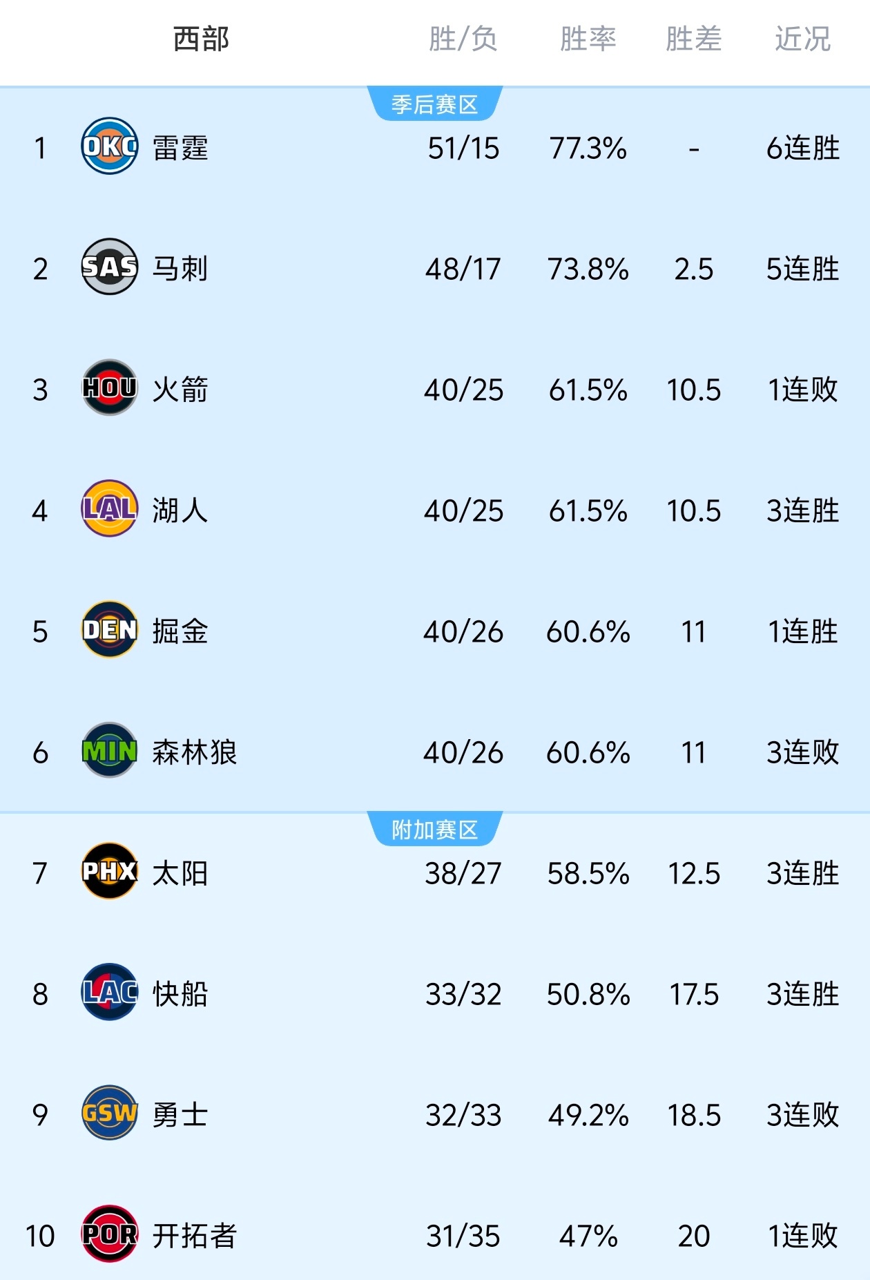 火箭输球!湖人升至西部第3!现在雷霆和马刺遥遥领先,其他球队最好的位置就是西