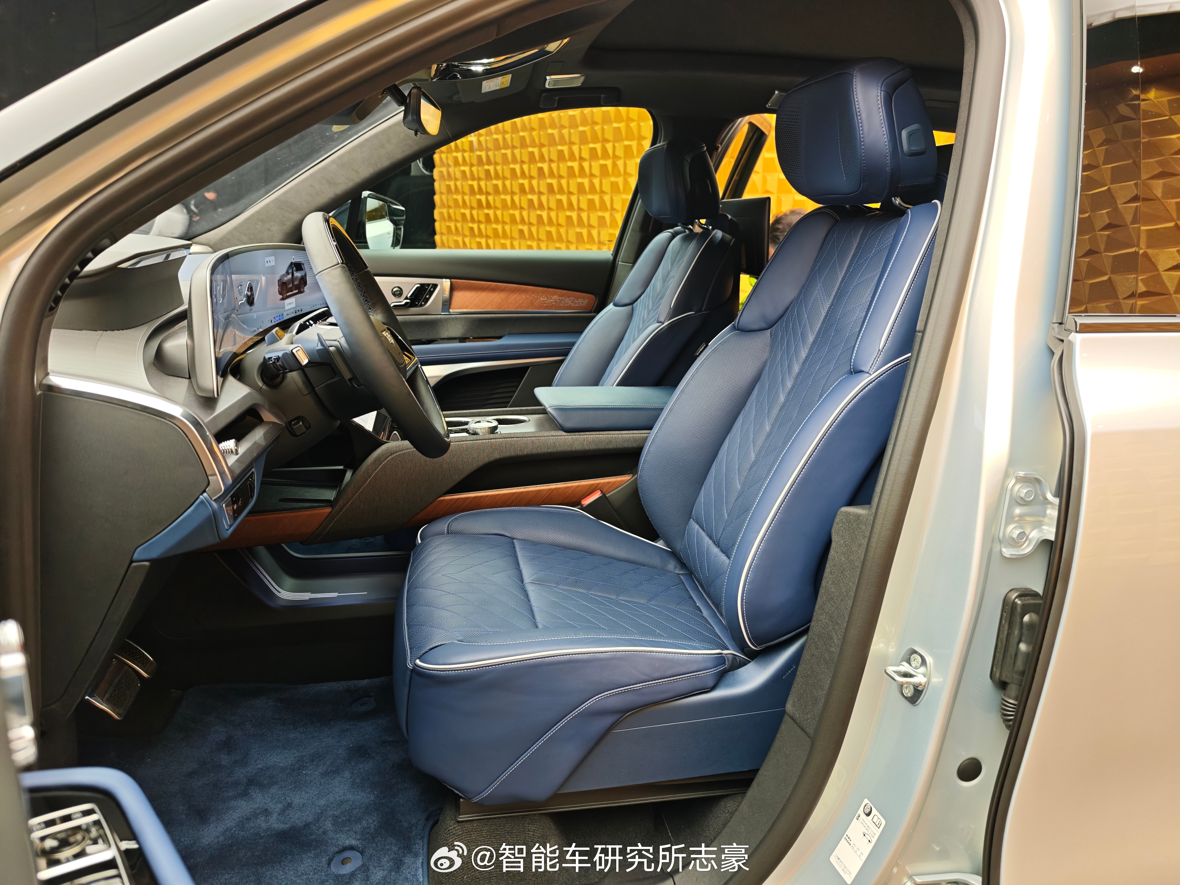 冷色深蓝高档真皮,银色金属饰板结合实木暖色的碰撞,搭配出来,光是设计用料,就很让人赏心悦目
