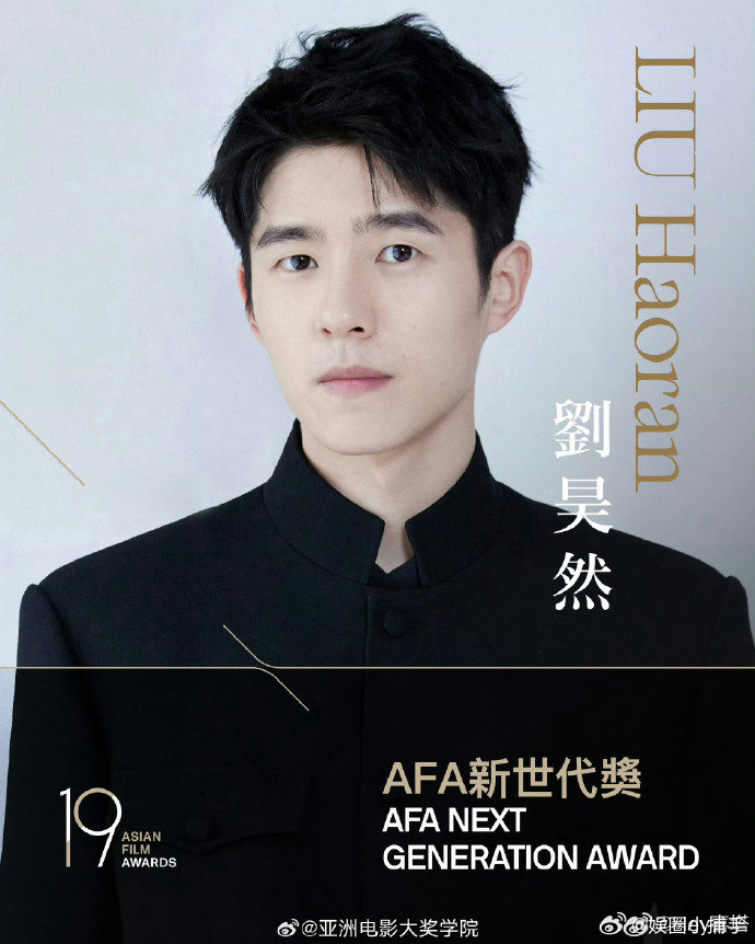 刘昊然新世代恭喜刘昊然荣获亚洲电影大奖AFA新世代奖!期待未来新作品哦