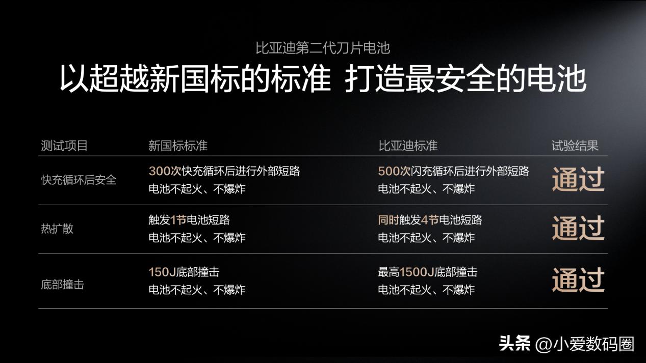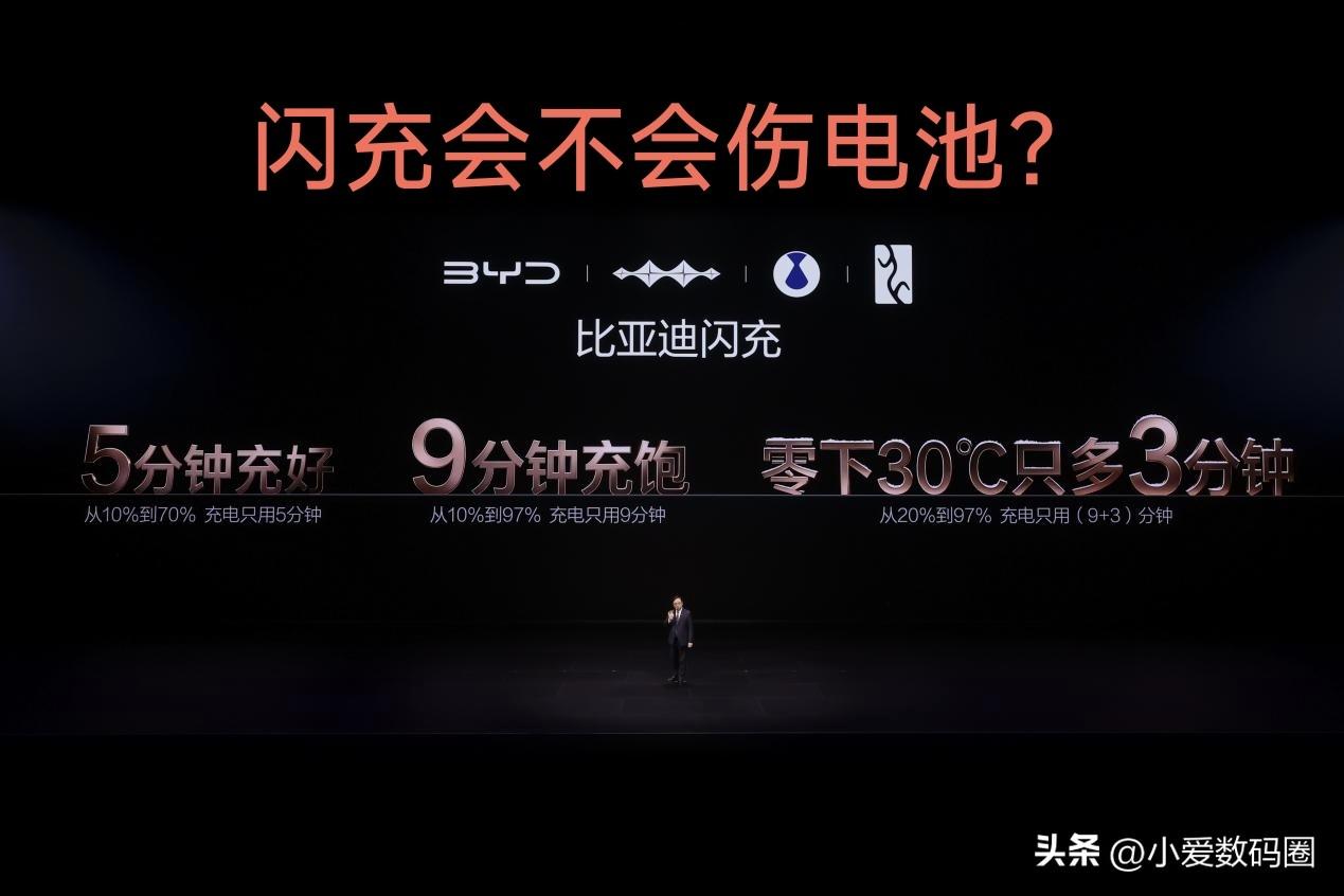 闪充不影响电池安全?如果我说这句话那肯定会被批,但这是比亚迪说的,而且是拿着实验室数据说的,毋庸置疑了。 比亚迪第二代刀片电池和闪充技术发布,常温5分钟充好,9分钟充饱,零下三十度,12分钟充到97%,这实测结果确实很理想,而有些人就担心这么理想的电池背后会不会存在电池安全隐患? 存在这想法的就错了,看比亚迪怎么做的?第二代刀片电池质保政策再加码,6年或15万公里内第二代刀片电池容量低于77.5%,包换!免费!电芯也终身保修。给承诺比什么都有说服力。 闪充不影响电池安全也是有实测依据的,500次闪充后边闪充边针刺试验不冒烟不起火。4节电池同时短路,周围电芯温度依然正常,不冒烟不起火不爆炸。底部撞击试验挑战10倍于新国标的能量,依然不起火不爆炸。 比亚迪也是用承诺和实测数据重新定义电池安全标杆,无愧于“电池大王”的称号。