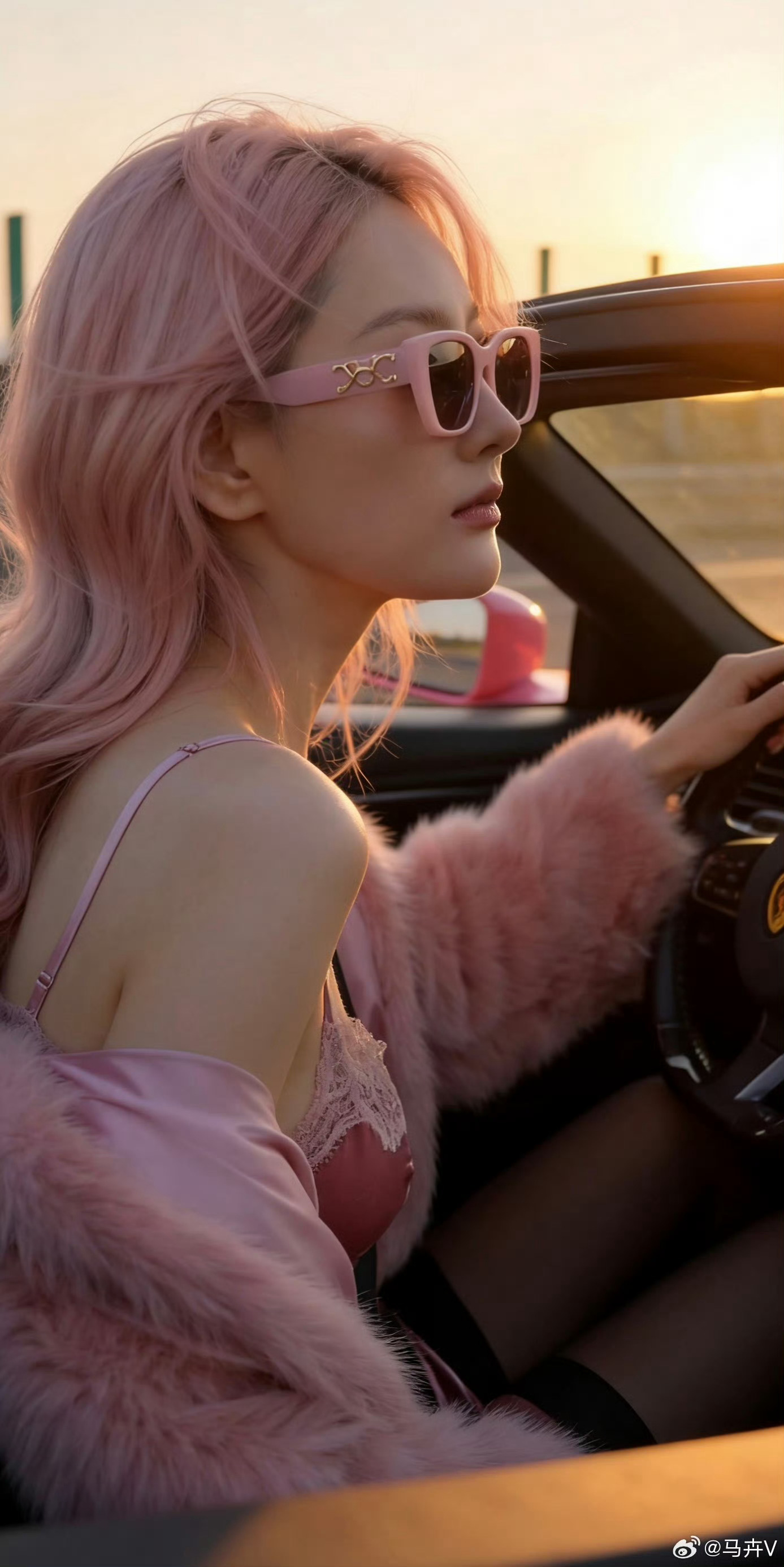 马卉 🌸 香车配美女,粉系搭黑丝
