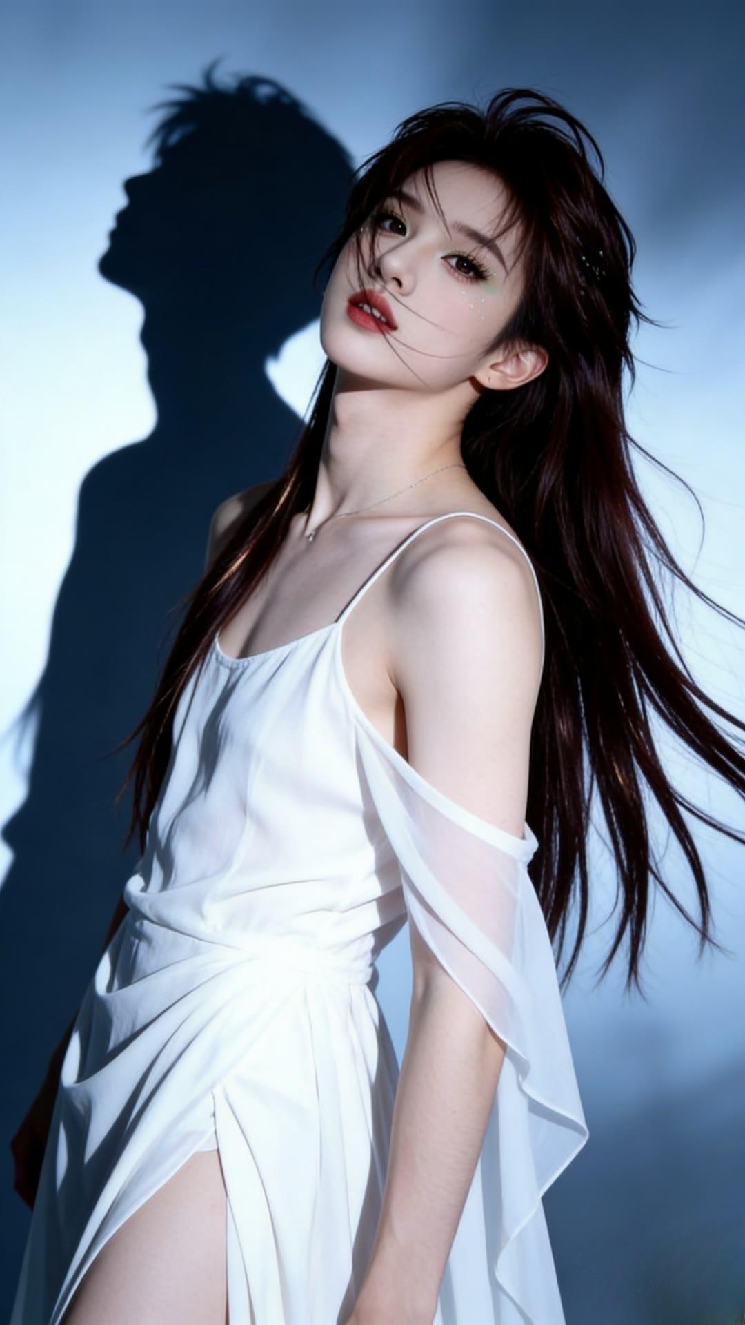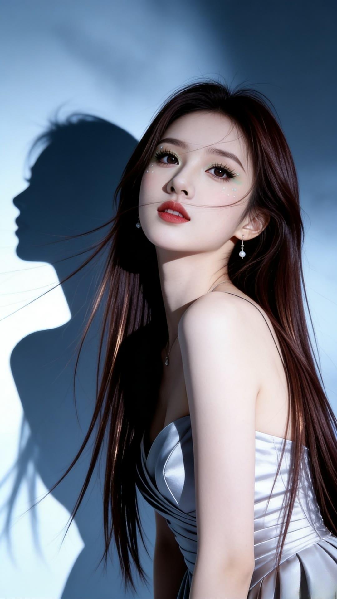 甜美笑容,温柔发丝,红白相间,清新自然