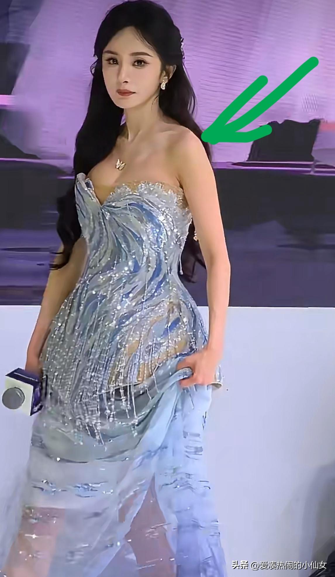 这一夜,杨幂穿低胸礼服尴尬捂胸口,脖子前倾显疲惫! 要说杨幂真的是劳模,接连几天出席了好几场活动。今天她现身上海,为某品牌线下活动站台。 她身穿 Rahul Mishra 2026 春夏高定系列的蓝色珠片裙,显得相当隆重,蓝色让她看起来温婉不少。 镜头一推近,不少网友发现,她今天这件礼服裙是深V款,因此,她在里面加了件肉色打底,但是肉色打底露出来一截,大大影响了整体的美观度。 站在台上的杨幂,也显得十分放不开,时不时地用手捂住胸口,她整个人有点含胸驼背,脖子前倾没有站直,显得很没精神。可能是连轴转的关系,妆容精致的她,难掩疲态。 网友纷纷提出质疑,既然选了这条裙子,就不该加内衬,更没必要捂胸,显得特别尴尬和小家子气。 那么对此,你们怎么看呢?