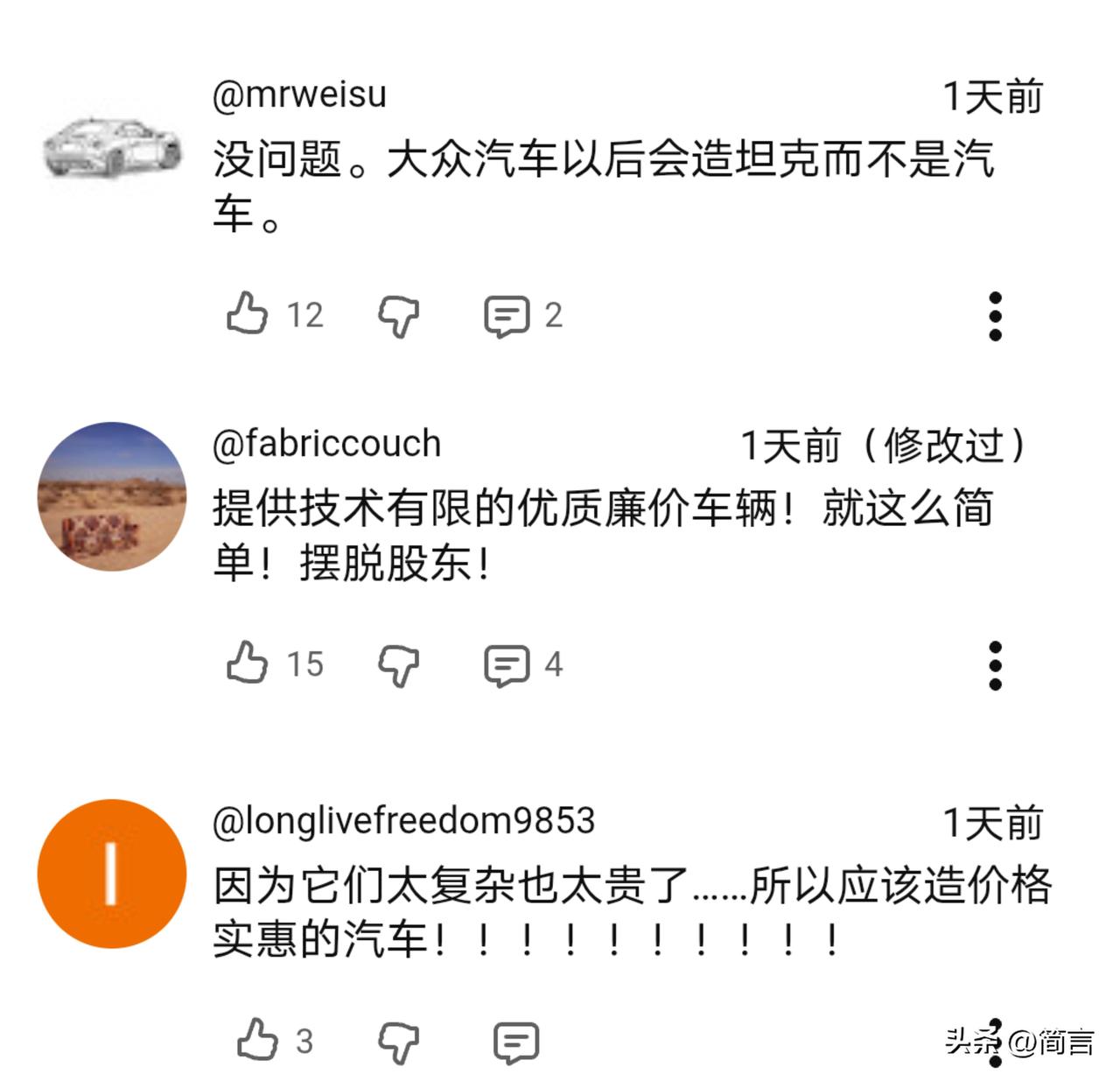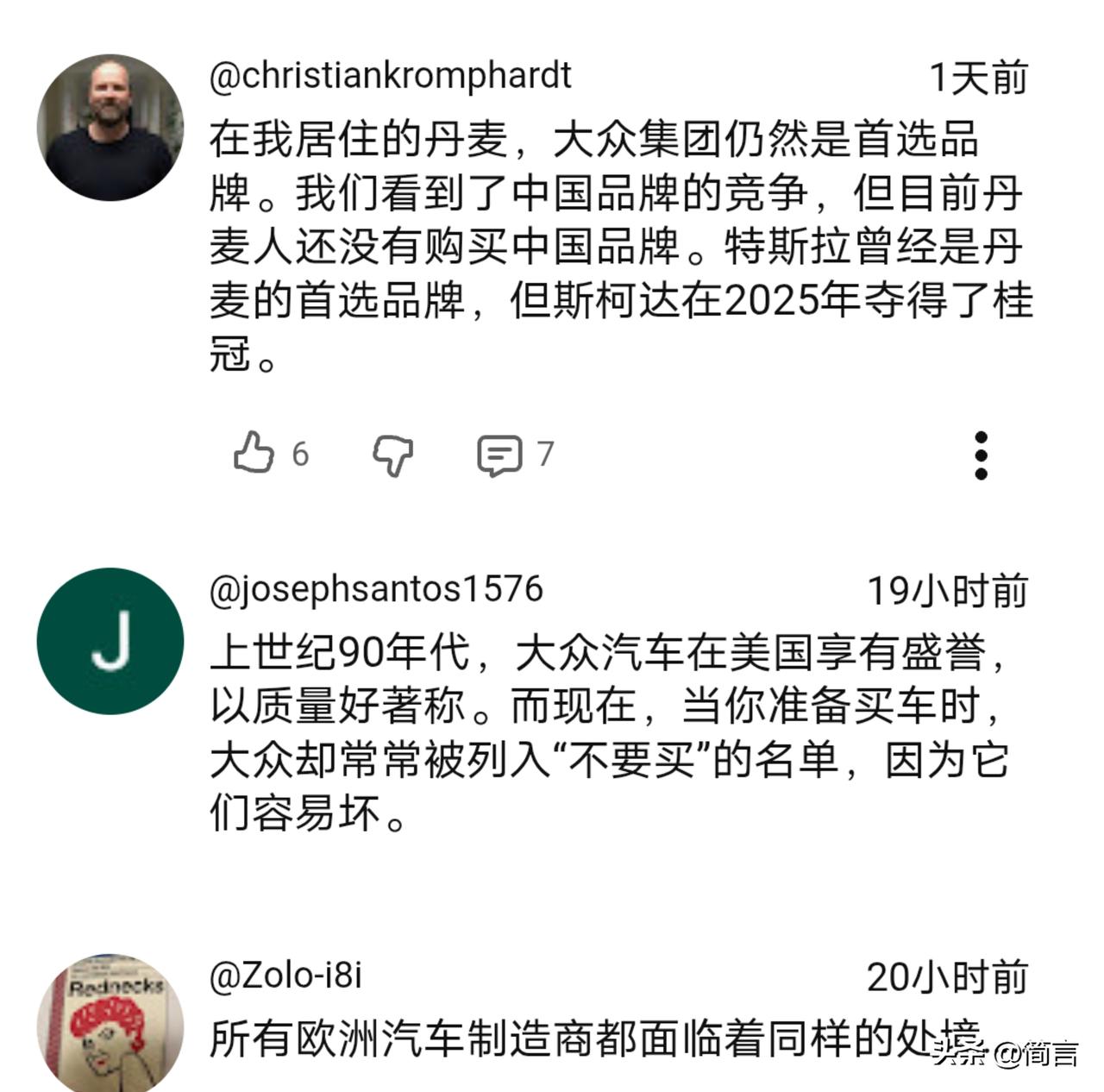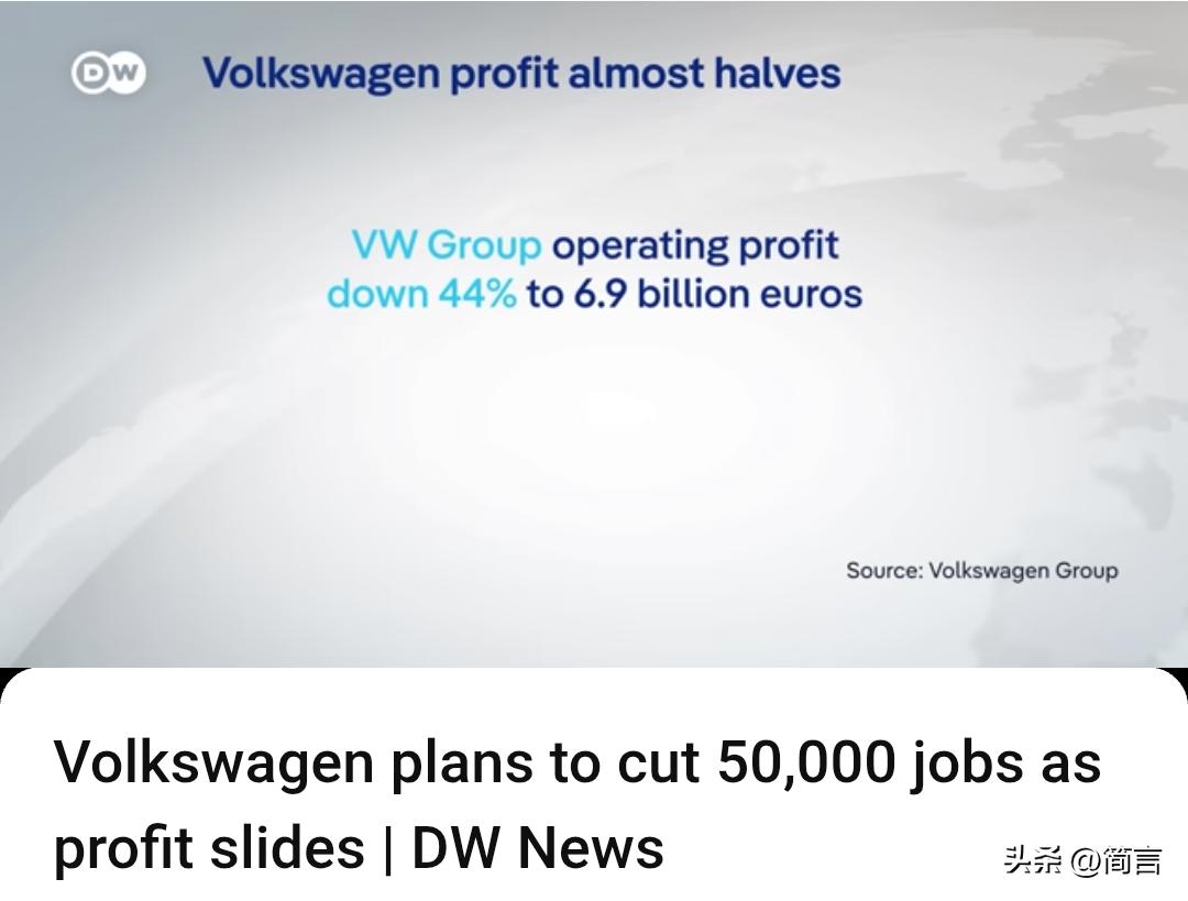 外媒:由于利润下滑,大众汽车计划裁员5万人… 据德媒3月11日报道,德国汽车巨头汽车正在面临困境。该公司表示,去年的营业利润同比下滑了44%,尽管各品牌全球共售出900万辆汽车,但这仍然不足以应对当前所面临的问题,因而计划到2030年裁员5万人。 消息传出,引发热议。国外网友认为,价格偏高、质量问题及新能源汽车的竞争等,是导致大众汽车利润下滑的主要原因。那么,未来其还能稳住全球第二大汽车制造商的宝座吗?