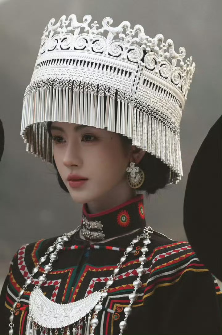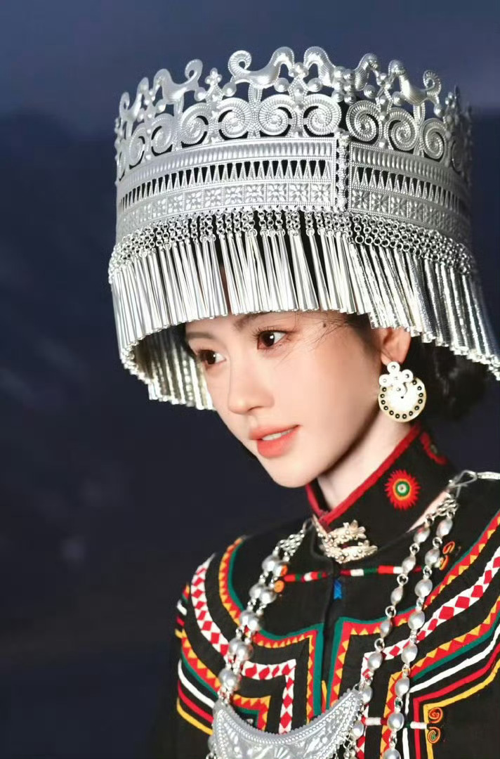 鞠婧祎胶片鞠婧祎苗疆少女妆造 这波苗疆少女杀疯了❤️!银饰垂鬓,眉眼勾魂,蛊系氛围感直接拉满!胶片颗粒感衬得异域灵气更绝,适配度真的百分百,每一帧都美到想存成壁纸!