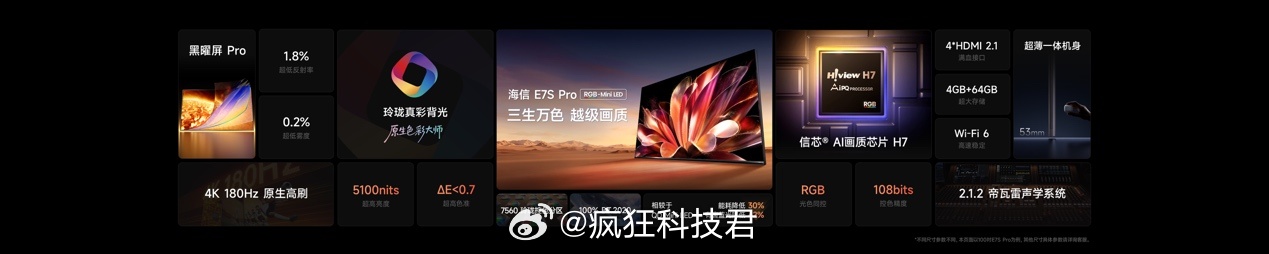 海信E7SPro:RGB-MiniLED、H7芯片、180Hz高刷和帝瓦雷声