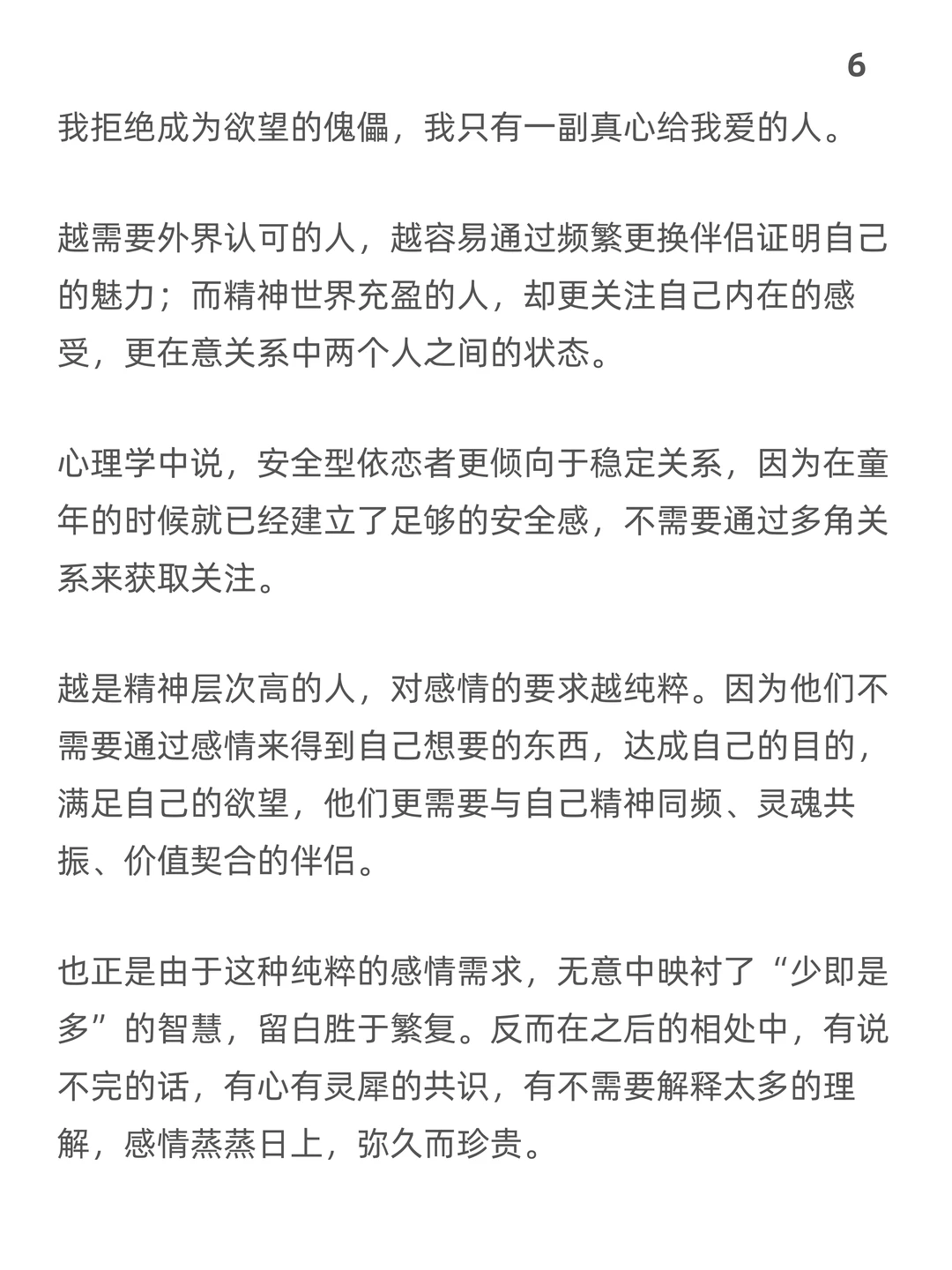 专一 纯粹的感情 爱情的本质 感性和理性 亲密关系 个人成长 精神层面的追求