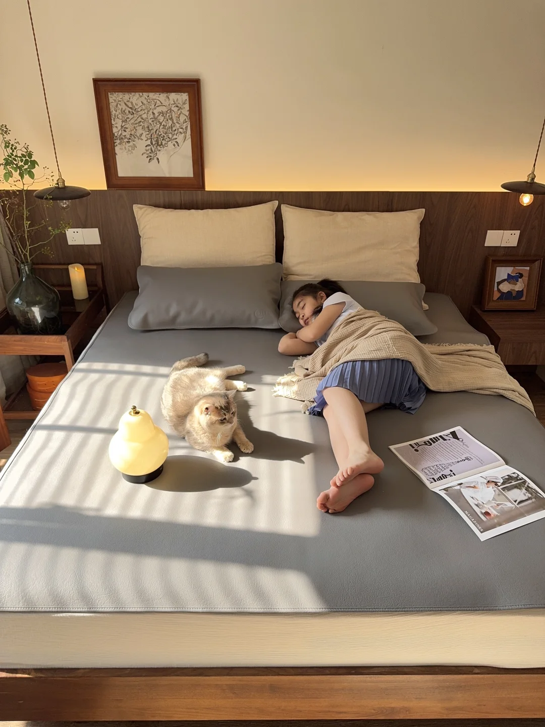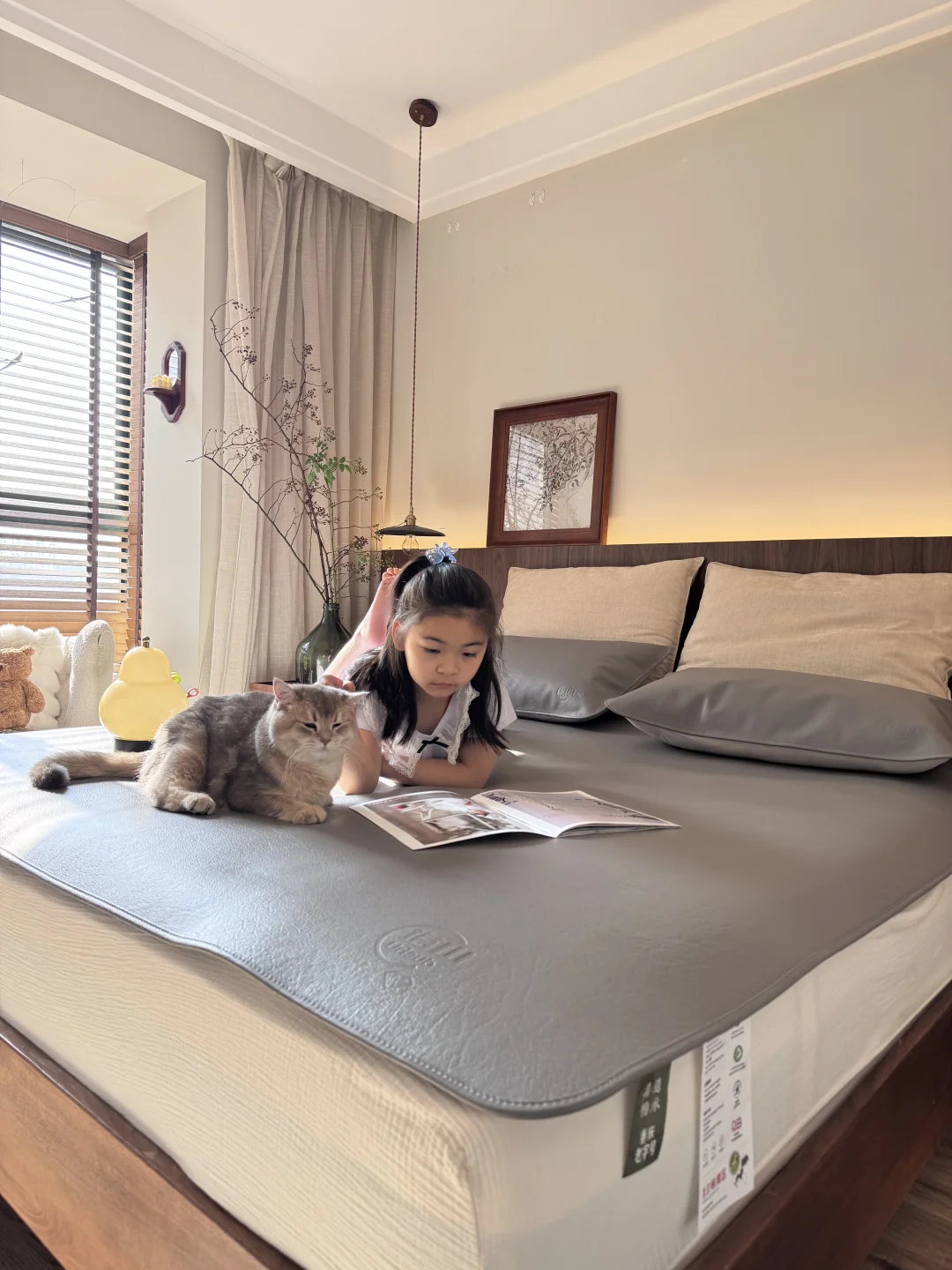 去年被江浙沪梅雨季的潮湿黏腻逼到崩溃😫,咬牙入了塔山牛皮席,如今整整用了一整年,彻底被它狠狠圈粉! 当初一眼看中的就是它那股温润的凉感,不像普通竹席冰得人一哆嗦🧊,而是清清爽爽的舒服触感。没想到用了一年,这种体验居然半点没打折扣! 三伏天出汗多的时候,躺在上面依旧不粘身、不闷汗,皮肤贴上去还是干爽顺滑的☁️;就连梅雨季房间里潮乎乎的,席面也从来不会返潮发黏,往年翻来覆去睡不着的糟心感,直接消失得无影无踪。 它的耐用度更是让我惊到🤯!家里的猫总爱在席子上踩奶、蹦跶,偶尔还会打翻水杯洒在上面💧,但只要拿湿毛巾随手一擦,立马恢复干净,席面连一道划痕都没留,更别说开裂、掉皮了,细腻的皮纹和微微的颗粒感,还跟刚买时一模一样。 而且A类母婴级的材质,真的踩在宝妈的心巴上❤️!孩子在席子上滚来滚去玩玩具、睡整觉,完全不用顾虑安全问题,当妈的总算能少操一份心。 打理起来也堪称懒人福音✌️,夏天用完擦一擦,塞进送的收纳袋里就行,今年拿出来依旧崭新如初,连保养的功夫都省了。 以前总觉得牛皮席是贵价好物,现在才懂这是实实在在的“一次投入,长久受益”💰。一张好凉席带来的整夏好睡眠,真的千金不换,这塔山牛皮席,我打算一直用下去了!
