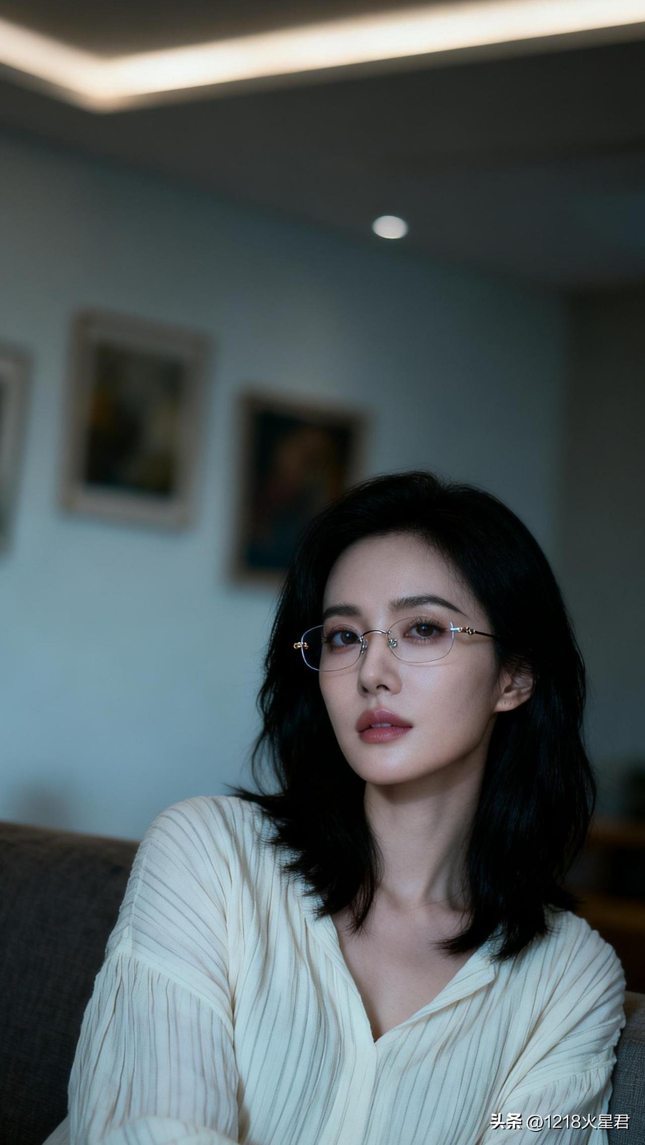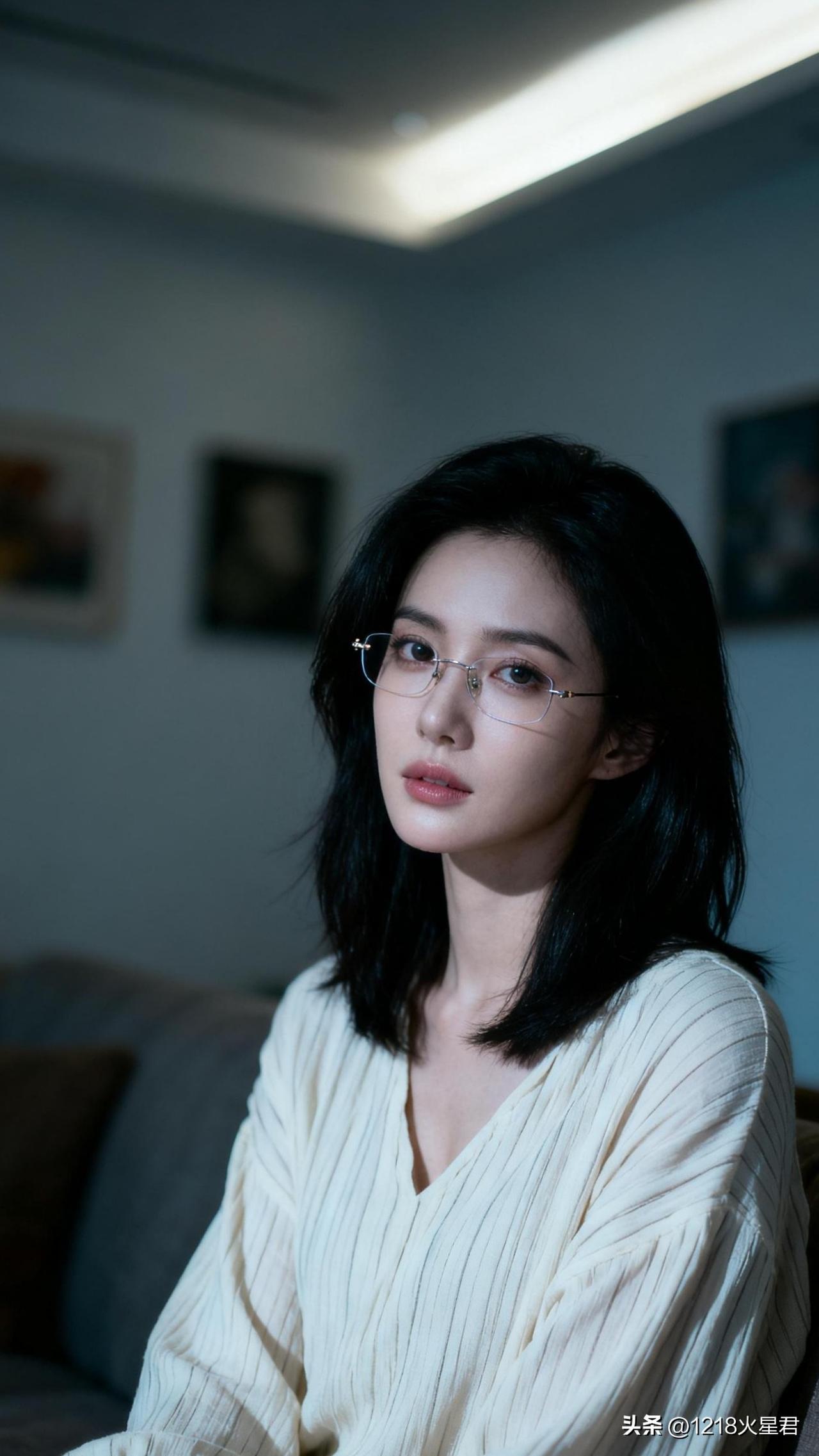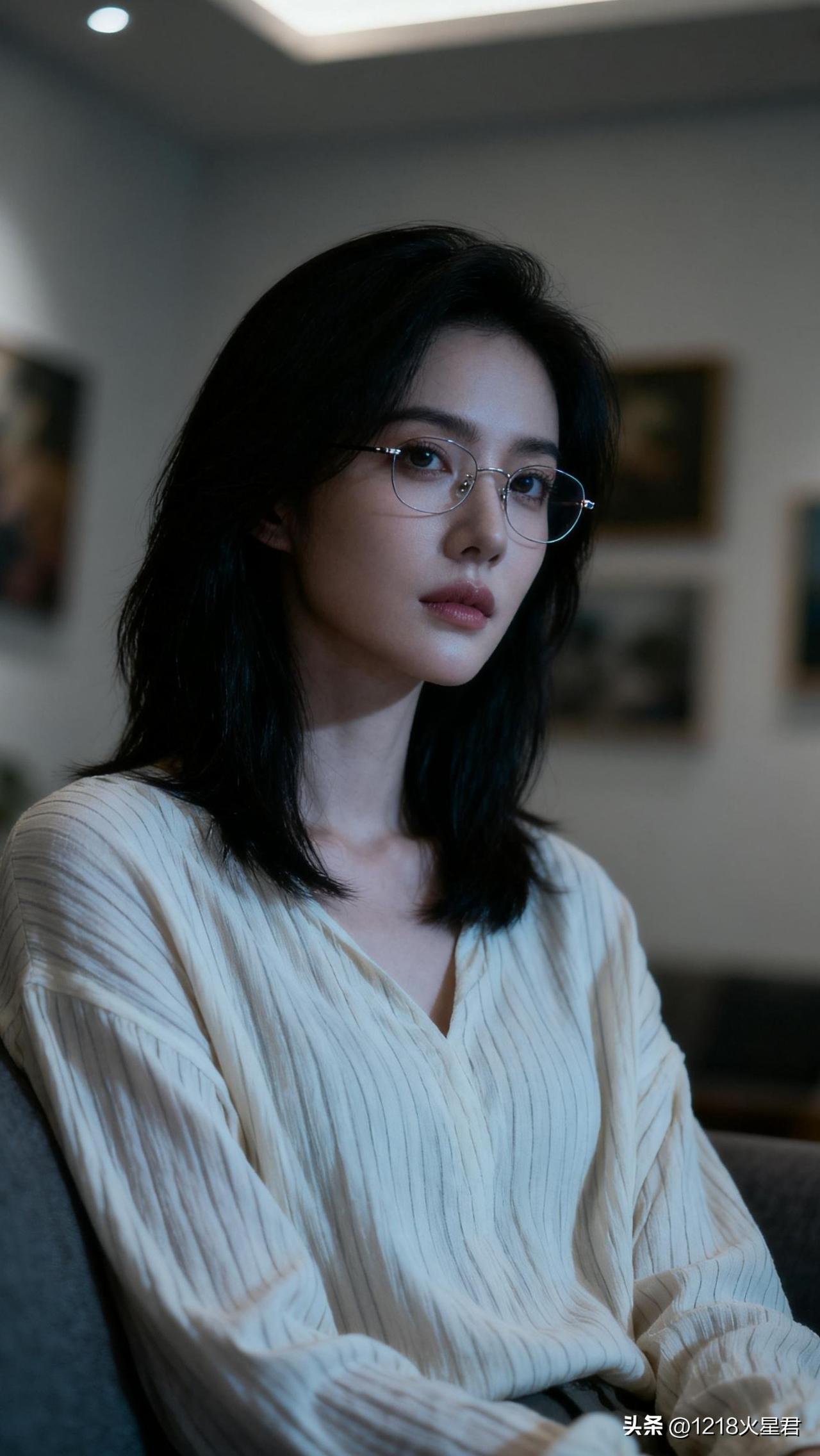 怎样穿搭能显示出温柔的女生气质?优雅黑发女孩,眼镜下的温柔目光,复古文艺风