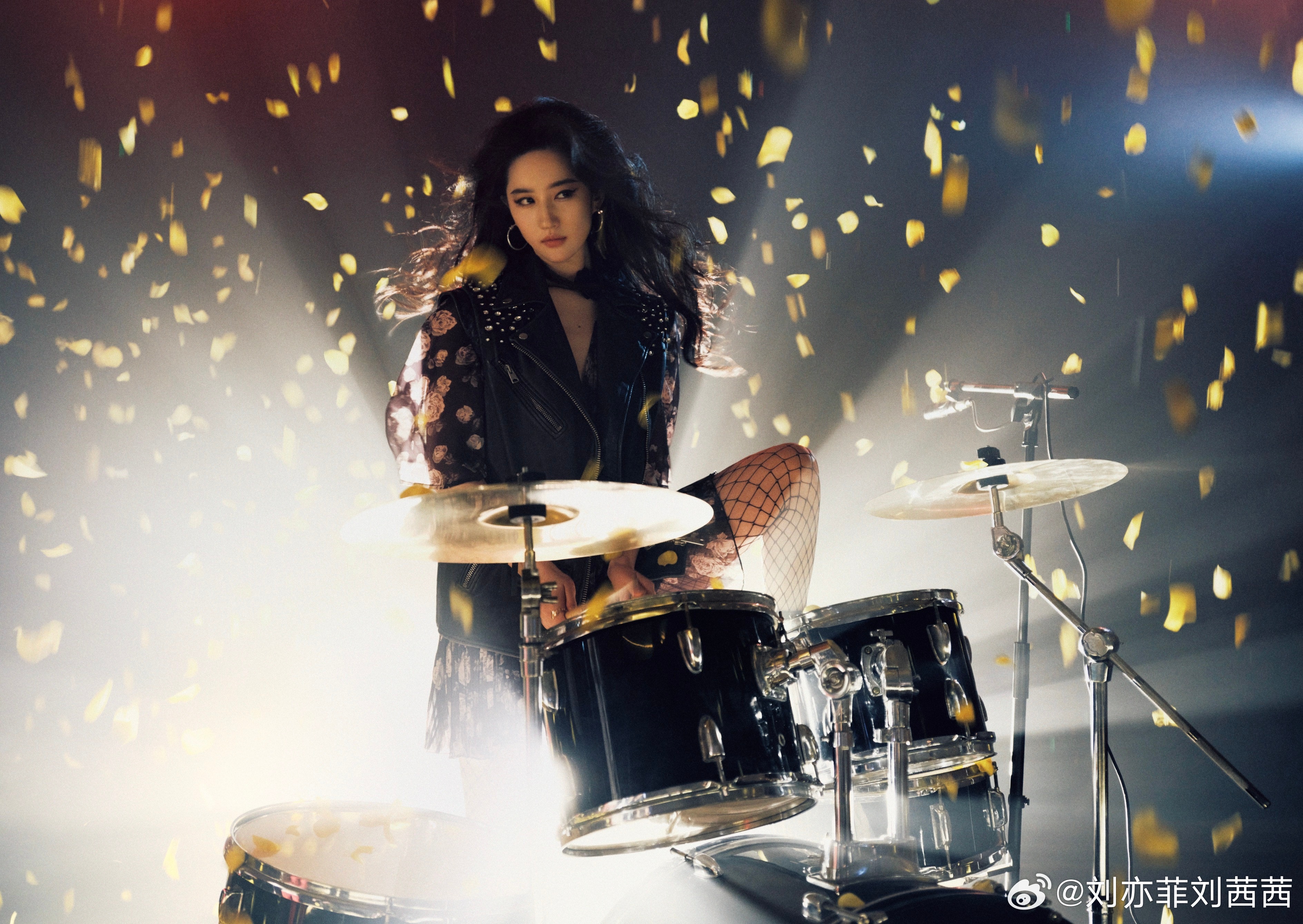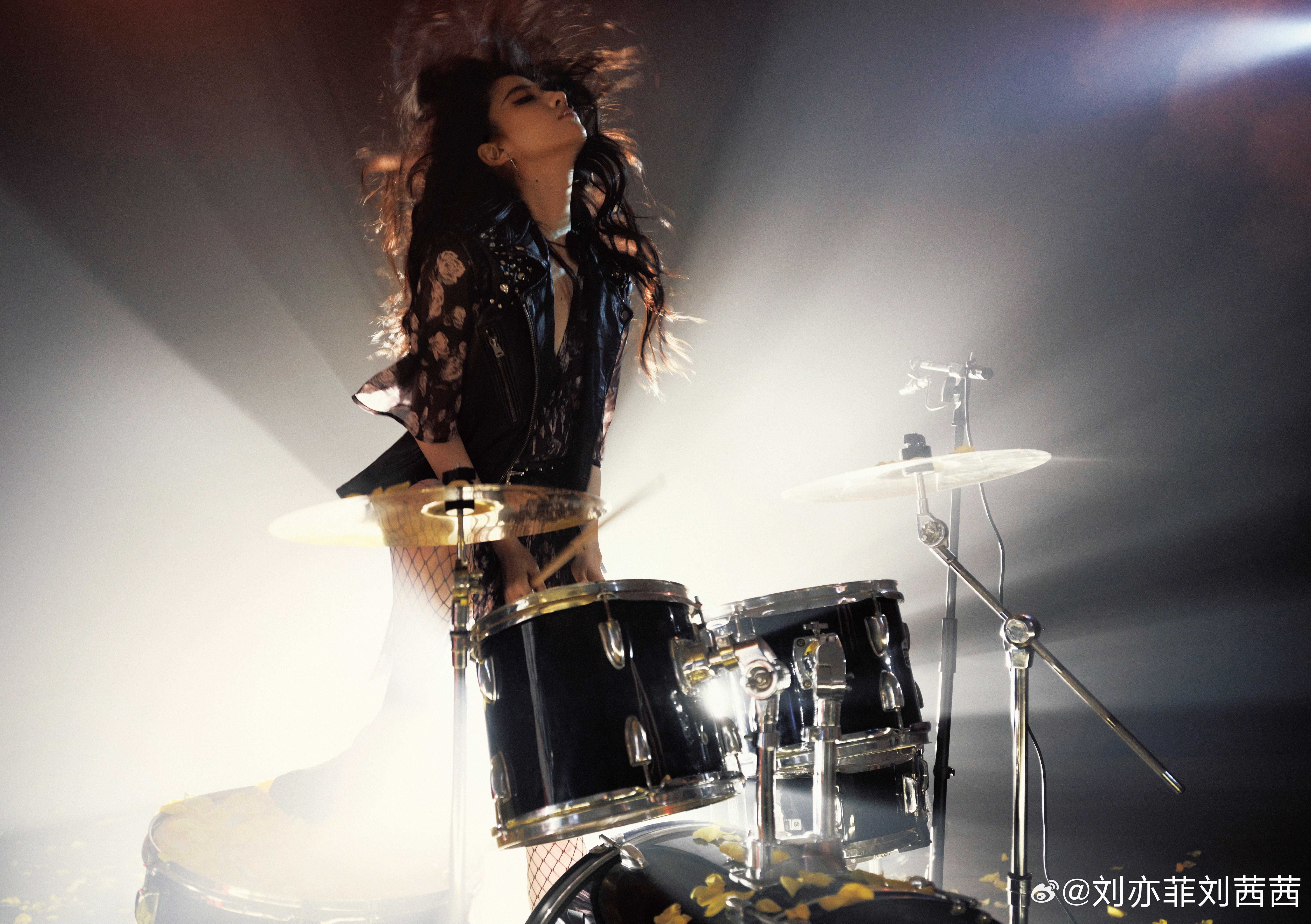 在热血沸腾的摇滚演出现场,她坐在鼓组前,或低头击鼓,或仰头甩发,仿佛正沉浸在震耳欲聋的鼓点与欢呼中。