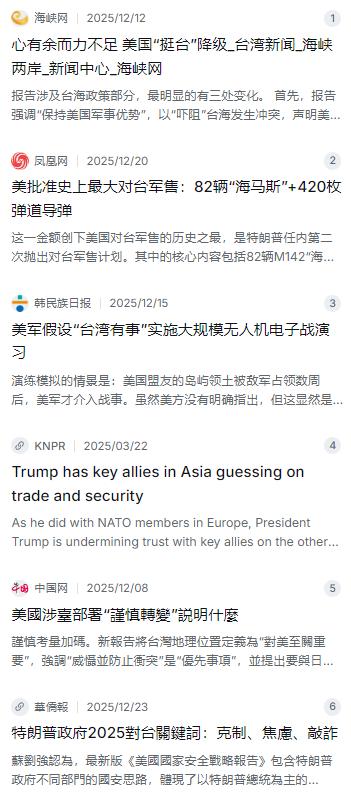 特朗普终于明牌了!在台湾问题上,美国藏了这么多年的 “战略模糊” 面具,被他一把扯了下来,以往美国总是两面讨好,跟大陆谈就说坚持 “一中原则”,转头就给 “台独分子” 递武器、搞小动作,如今特朗普直接把话说透,再也不藏着掖着。 麻烦看官老爷们右上角点击一下“关注”,既方便您进行讨论和分享,又能给您带来不一样的参与感,感谢您的支持! 特朗普这回算是彻底不装了。2025年他再度入主白宫后,在台湾问题上直接把美国藏了几十年的那张“战略模糊”底牌给扔到了桌面上。以前美国那套玩法,说白了就是两头都想占便宜:跟大陆谈合作的时候,把“一个中国”挂在嘴边;转过背去,又给台当局递武器、送温暖。现在好了,特朗普压根儿不耐烦搞这套虚的,直接把台湾挑明了当成对付中国大陆的一枚地缘棋子来用,话说得透透的,再也不藏着掖着了。 嘴上说得硬气,但特朗普政府的实际动作更狠。就在2025年12月17日,他们搞出了个惊天动地的大动作——一笔价值超过111亿美元的超级军售大单砸向了台湾地区,这不仅是特朗普任内的第二次,更是创下了美国对台军售的历史最高纪录 。清单里的东西可都是硬货:82套M142“海马斯”高机动火箭炮、420枚能打300公里远的ATACMS战术弹道导弹,还有一堆巡飞弹和反坦克导弹。按这个数算下来,加上之前买的,台军手里的“海马斯”总数要冲到111套,成了仅次于美国本土的第二大用户 。这哪是什么防御,分明就是在西太平洋给美国自己搭前沿哨所。 美国军方也没闲着,嘴上讨论的尺度越来越大,甚至直接把台海推到了模拟战场的聚光灯下。就在军售前不久,美军刚在夏威夷那边搞了场持续两周的大规模演习,代号叫“联合太平洋多国战备中心”演练,里边儿模拟的场景明眼人一看就懂——就是冲着“台湾有事”来的 。这回玩的不是传统那套,而是从俄乌战场偷师学来的无人机电子战,连参演士兵都说,新式无人机跟不要钱似的送过来,拿到手就得立刻学会用,还得防着对方的反无人机装备 。美国少将也公开讲,乌克兰战场上的“猫鼠游戏”,美军正在盯着学呢。这种公开讨论“台海防卫计划”、甚至模拟跟解放军交手的做派,说明美国的政策早就从“模糊”走到了“半透明”,就差把底牌亮出来了。 特朗普之所以敢这么玩,很大程度上是掐准了华盛顿眼下的风向——反华在国会山那儿成了两党难得能尿到一个壶里的事儿。光自己上还不够,他还拉着日本、菲律宾、澳大利亚这些老伙计,试图织一张更大的网来困住中国 。你看2025年初他跟日本首相石破茂见面,会后那份联合声明里,头一回白纸黑字地写进了“反对用武力或胁迫改变台海现状”这种狠话,还强调要维护台海和平稳定 。这意思再明显不过了,就是想把盟友都绑上美国的战车,搞所谓的“集体防御”,试图把台海问题从一个双边的事儿,硬生生拉扯成整个“民主阵营”跟中国对抗的前线 。 不过,别看特朗普嘴上喊得震天响,真到了要命的军事承诺上,他又变得油滑得很,生怕被拖下水。最新出炉的那份《美国国家安全战略报告》就挺有意思,一边把台湾的地理位置说成“对美国至关重要”,嚷嚷着要“威慑冲突”,但另一边在关键措辞上却悄悄往后缩 。跟以前拜登政府用的“反对”任何一方改变现状不一样,这回特朗普政府换了个词儿,叫“不支持”单方面改变现状 。这“反对”和“不支持”听着差不多,分量可差远了,从主动拦着变成了站着看。说白了,美国还是怕万一真擦枪走火,把自个儿赔进去,所以反复强调“威慑”和“防冲突”,核心其实是别惹事,别让我难办 。 这种矛盾心理背后,其实是美国越来越浓的焦虑感。这些年,解放军在家门口的底气越来越足,五角大楼自个儿做的兵推都说,在中国周边跟解放军硬碰硬,根本没胜算 。美国那些明白人也看得透透的,有国防部副部长公开讲台湾不是美国“生死攸关的利益”,还有学者警告说“坚信美国必保台”的时代已经过去了 。特朗普政府里的人也差不多,不少人把台湾看成是讨价还价的筹码,甚至是“敲诈”的对象 。那笔111亿美元的军售,与其说是帮台湾,不如说是借着“保护费”的名头,从台湾身上狠宰一刀,顺便把台积电这样的命根子往美国搬,搞所谓的“美积电” 。 说到底,特朗普这一套“明牌”打法,表面上是在给台海局势火上浇油,骨子里却透着一股生意人的算计和战略上的心虚。他既想利用台湾这张牌给中国大陆添堵,又时刻盯着风险收益比,生怕把自己折进去。不管美国怎么折腾,是搞军售还是拉盟友,都改变不了两岸同属一个中国的事实,也挡不住中国往前走、要统一的大势。就像外交部说的,无论美国卖给台湾多少武器,都阻挡不了中国终将统一的历史必然 。这点底气,咱们还是有的。