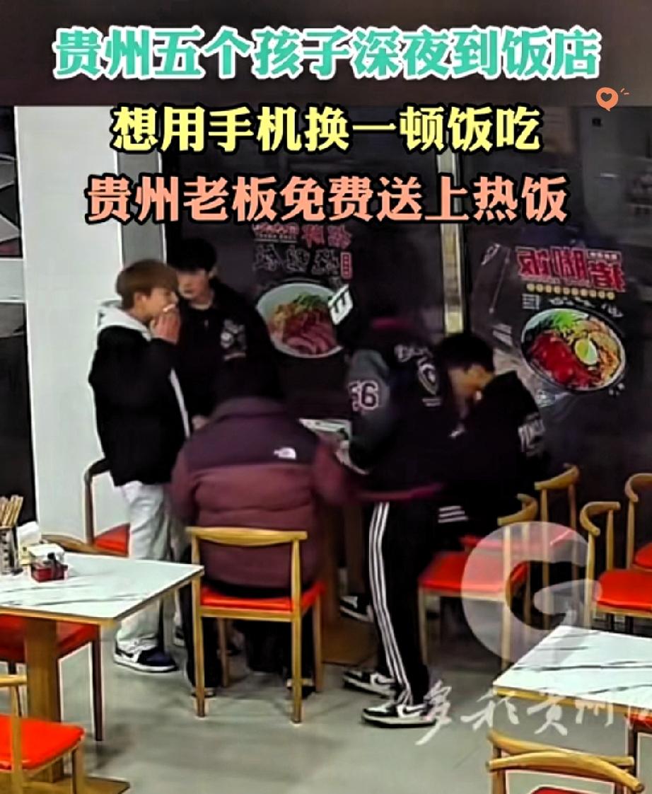 贵阳老板深夜遇5个染发少年,本以为是来闹事的,结果这波双向奔赴太暖了! 半夜独守门店,突然闯进几个打扮新潮的半大孩子,换谁都会嘀咕两句。 可没想到他们竟是掏手机换饭吃,态度谦和得不像话。 贺老板没收手机还管饱,更意外的是,少年们吃完主动洗碗、擦桌、摆椅子,连抹布都洗干净归位,道谢后才匆匆离开。 这哪是“问题少年”,分明是有教养的好孩子! 比起那些遇事就走极端的案例,他们就算落魄,也守住了做人的底线。 老板的善良不设防,少年的自尊不打折,这才是最动人的相处模式。 其实教养从不是穿什么、有多少钱,而是困境中依然懂得尊重与感恩。 这样的孩子就算暂时碰壁,未来也差不了。 如果是你遇到这种情况,会愿意相信这些陌生少年吗?