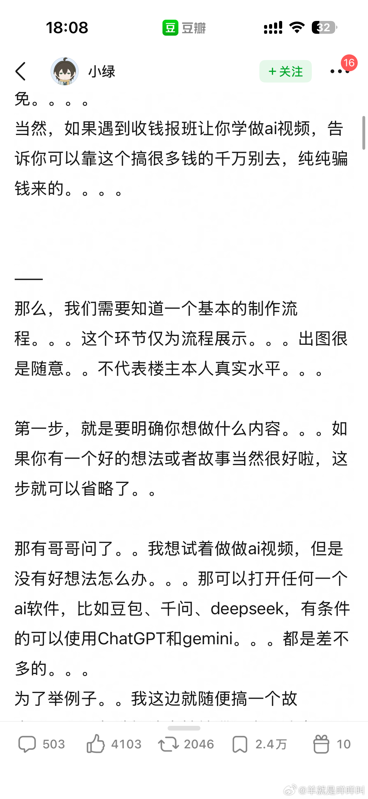 句号组有人教做AI短剧,感兴趣的可以看看