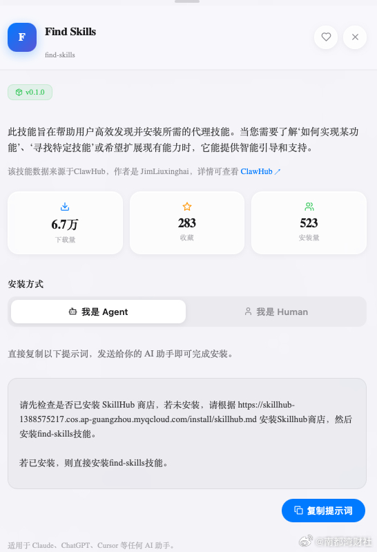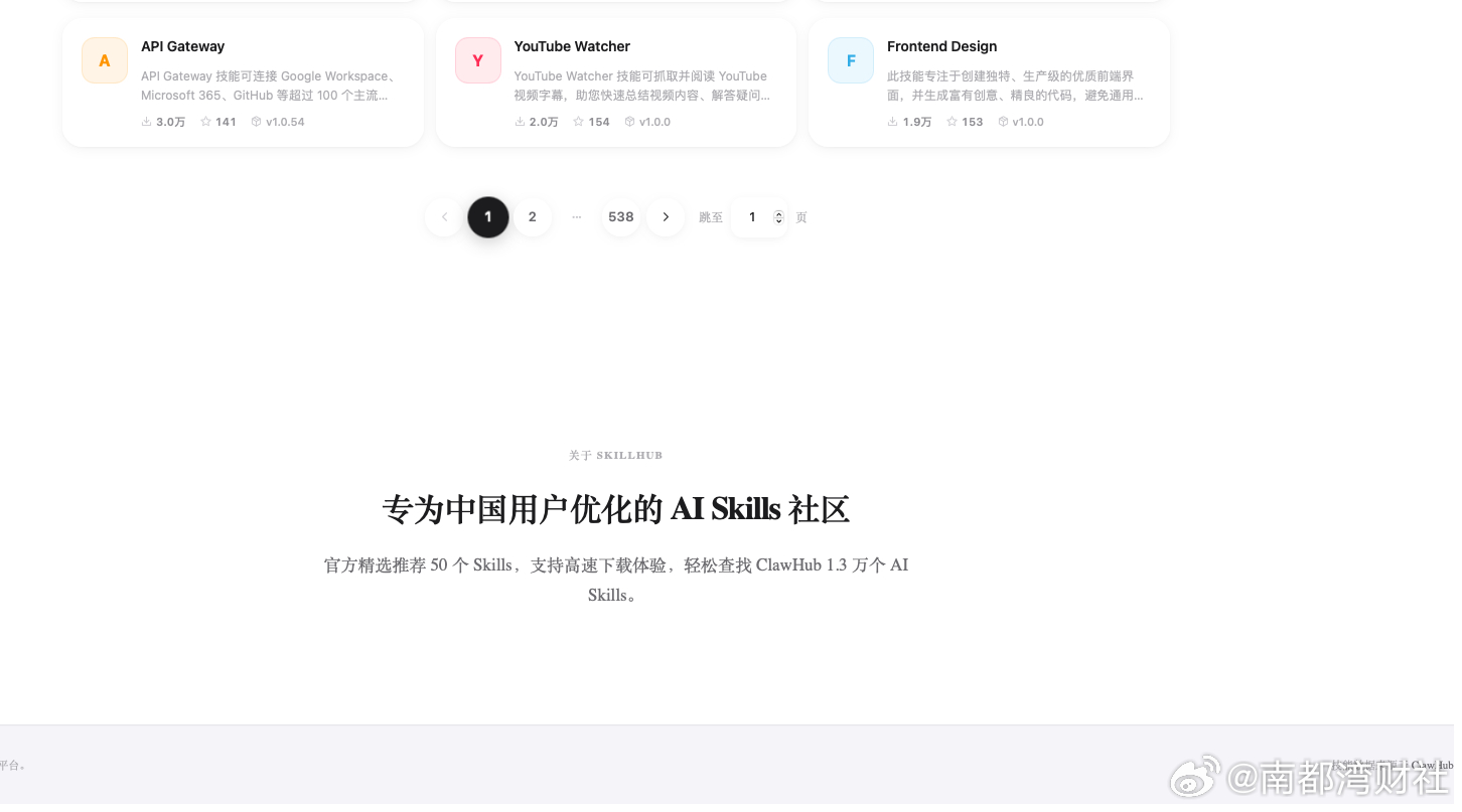 南都N视频记者看到,SkillHub在官网的右下角标明了SkillHub技能数据来源于ClawHub,并提到已经收录了ClawHub生态共1.3万个Skills(技能)。同时在每个具体技能上,腾讯都标记出技能数据来源于ClawHub。