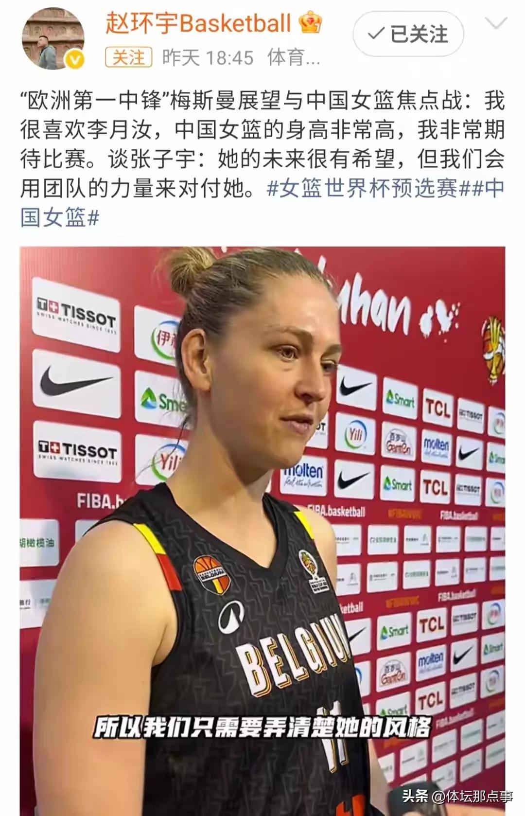 中国队内线的高度是无敌的,张子宇、韩旭和李月汝三名中国长城,在内线肯定会给比利时队造成很大压力,但高阵容也有致命的软肋,那就是移动慢,不灵活。 上一场,中国队和马里队的比赛,为什么前三节没有拉开比分?那就是马里队研究了中国队,她们就是利用了中国女篮内线移动慢的问题,用机动灵活的球员反复冲击篮下,收效十分明显。 这场比赛,比利时不是马里队,内外线实力都很强,轮换球员也很多。 中国队除了发挥内线高度外,外线一定打火了,能够传出有威胁性的传球,外线三分及早打开进球账户,咬住对手,取胜也不是没有可能。