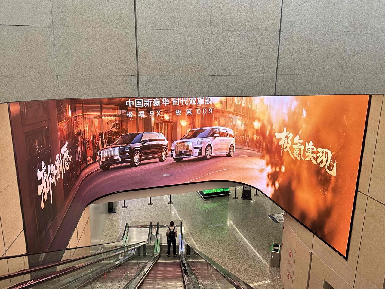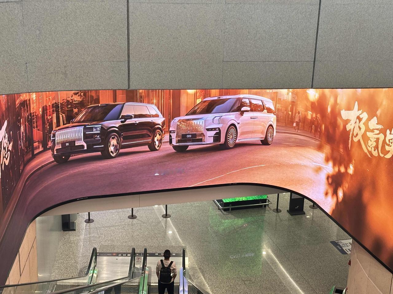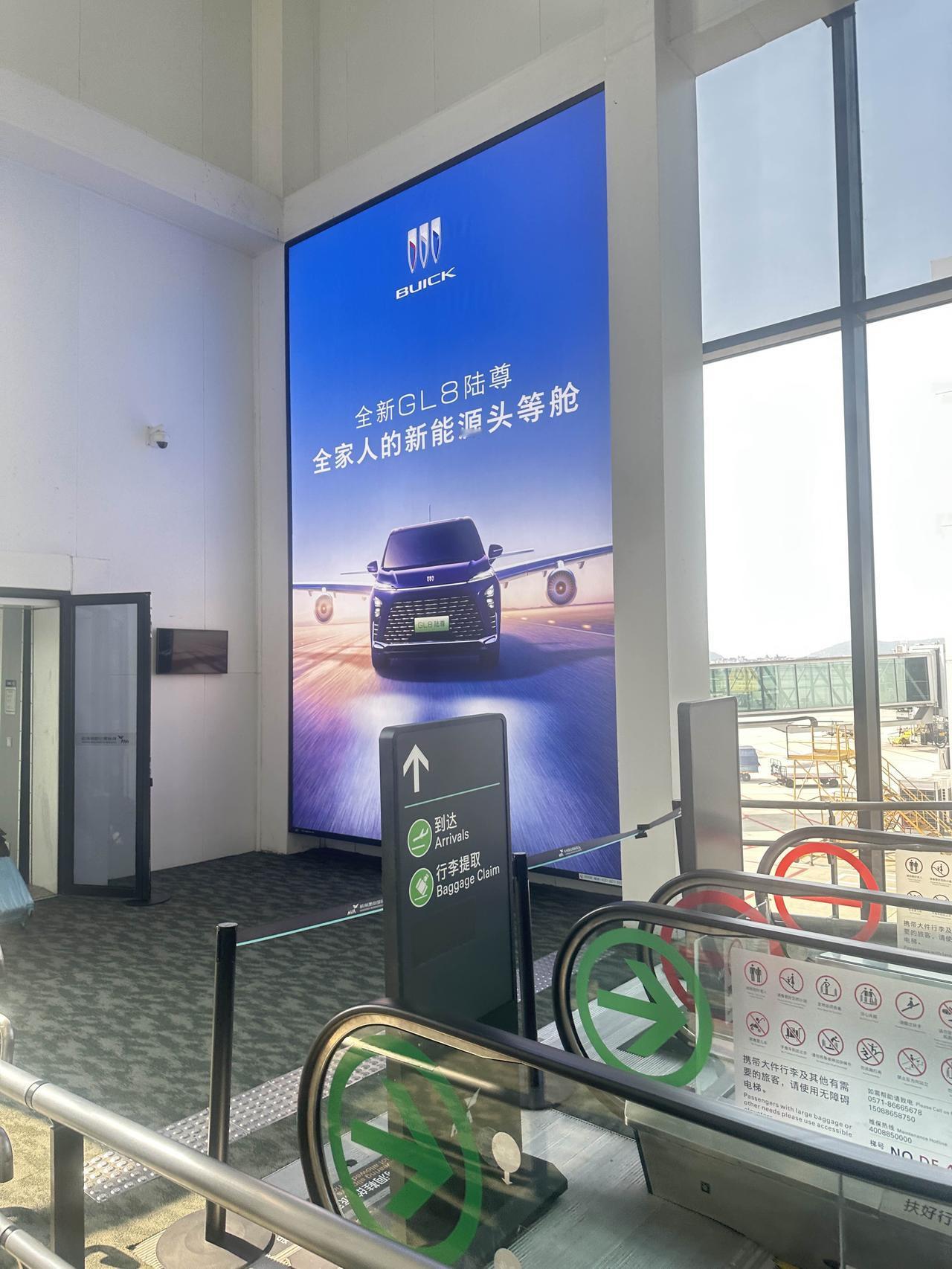 杭州萧山T4航站楼从里到外的汽车广告,看到腾势N8L了,最近腾势广告很猛,机场总能看见~ 那块进入国内出发的下电梯大屏应该是被吉利常年包下了吧~全是集团品牌~电梯下来确实很震撼,屏不大,贵在3/2包围感~ 廊桥通道上则是别克GL8陆尊 我感觉从去年开始机场的汽车品牌广场又开始复活了,越来越多,越来越大~不过上海虹桥还是奢侈品多,抬头就是LV,GUCCI,BOSS~