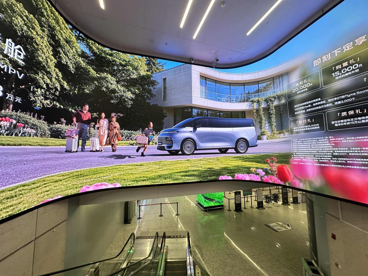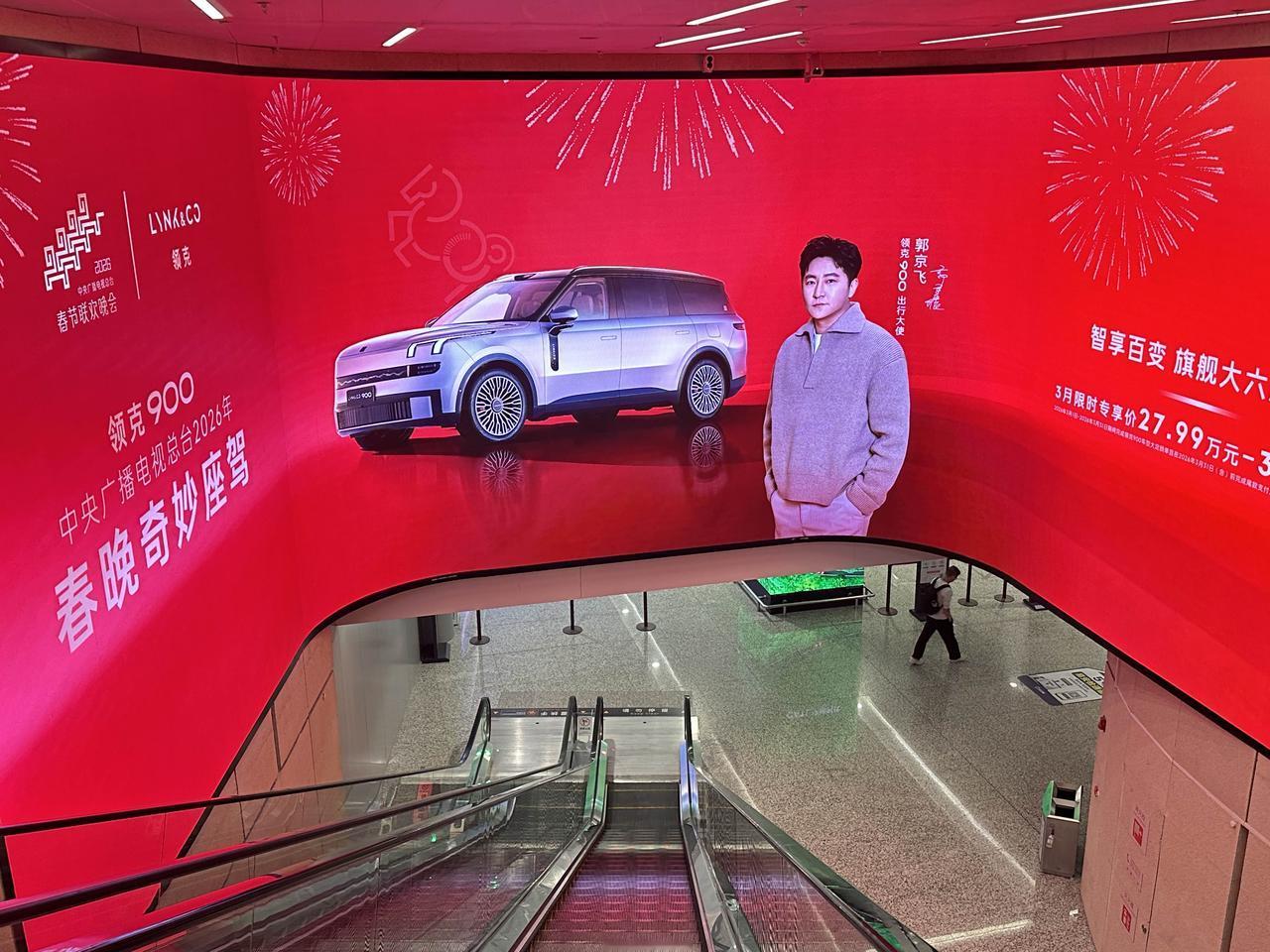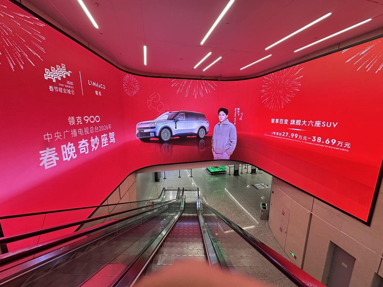 杭州萧山T4航站楼从里到外的汽车广告,看到腾势N8L了,最近腾势广告很猛,机场总能看见~ 那块进入国内出发的下电梯大屏应该是被吉利常年包下了吧~全是集团品牌~电梯下来确实很震撼,屏不大,贵在3/2包围感~ 廊桥通道上则是别克GL8陆尊 我感觉从去年开始机场的汽车品牌广场又开始复活了,越来越多,越来越大~不过上海虹桥还是奢侈品多,抬头就是LV,GUCCI,BOSS~