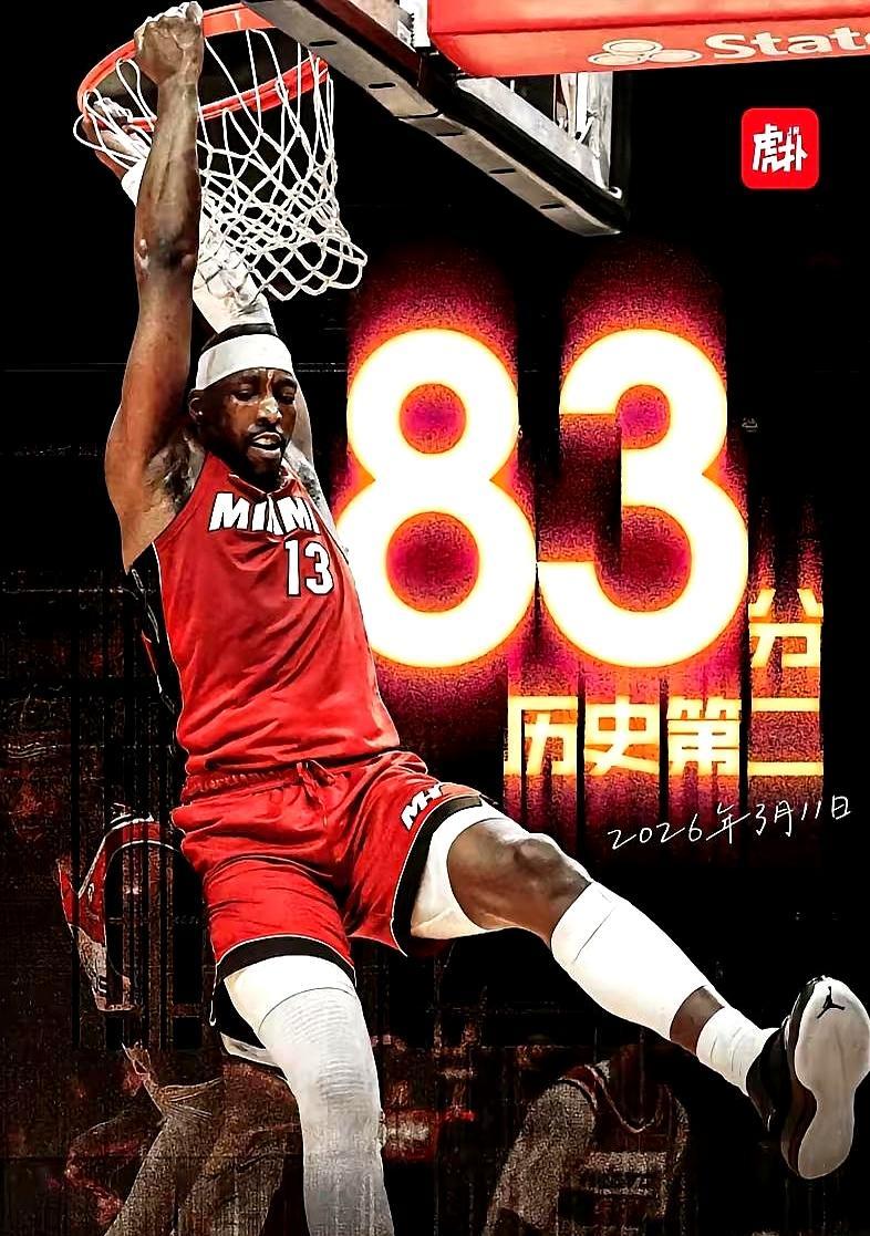 科比保持了19年的81分纪录,被阿德巴约破了。 此前阿德巴约生涯最高分才41分,没人预料到这场爆发。 2026年3月10日热火对阵奇才,他全场狂砍83分。 罚球出手43次命中36次,两项数据均创NBA历史纪录。 现在他的单场得分排历史第二,仅次于张伯伦的100分。 这几年东契奇、恩比德、米切尔先后拿下70+,联盟得分潮早就不是个例。 哪怕有人质疑对手摆烂、罚球占比太高,83分的成就本身已经足够传奇。 你觉得张伯伦的100分纪录,未来10年内会被打破吗?