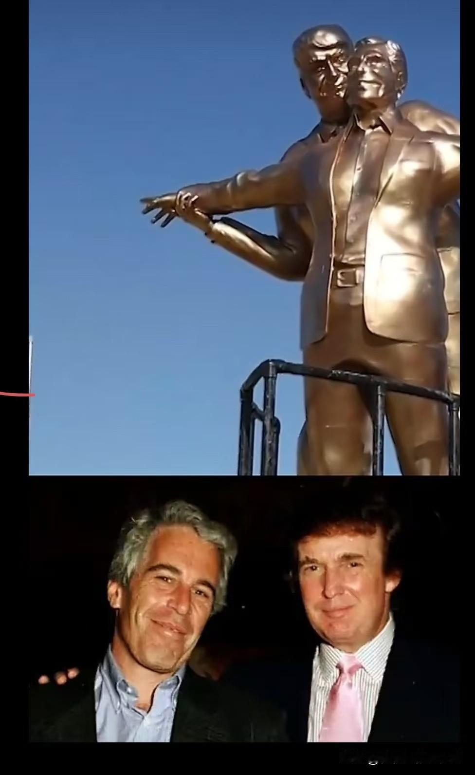这座雕像展现了特朗普最不愿意提及的往事。 近日,一座12英尺金色雕像矗立在华盛顿国家广场上。雕像中的俩人分别是爱泼斯坦和特朗普,雕像看上去表情很丰富。 #海外新鲜事# #热点观点#