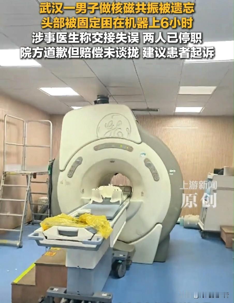 武汉同济医院这事,真的越想越后怕! 男子去做核磁共振,医生把他固定好、戴上面罩就走了,还在系统里标了检查完成? 本该十几分钟的事,他硬生生被困机器里6小时,喊破嗓子也没人应,手机也不在身边,不敢乱动,熬到天亮才被保洁发现! 家属报警都查不到人,系统显示早就做完检查了,谁能想到人还在机器上绑着! 网友都炸了:这哪是看病,简直是惊魂夜啊!作为医生,给患者做检查竟然能把人“忘”机器里?这简直比误诊更让人寒心啊! 要知道,医院道歉、医生停职都容易,可患者那6小时的恐惧与无助,谁能真正弥补呢? 本来生病就医是图个安心,谁能想到结果却遭遇这样的“惊魂时刻”!真的是太不可思议了! 真心希望医院别只停留在开会整改了,把流程落到实处,别再让下一个患者陷入这样的噩梦啊!