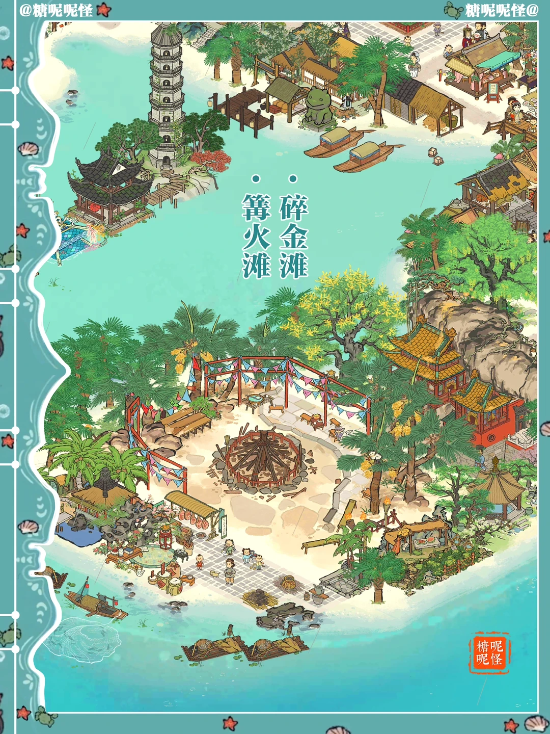 棕影岛·碎金滩·赤鱼滩·篝火滩全景布局