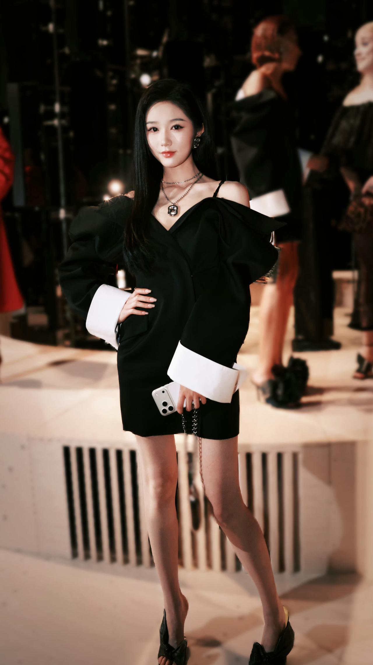 岳雨婷ElieSaab头排看秀,真成了短剧时装周看秀第一人,她这次的一百万花的值