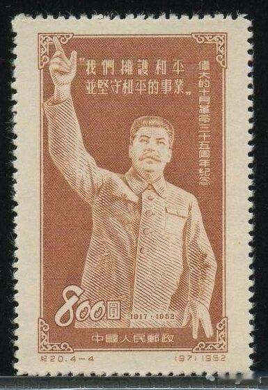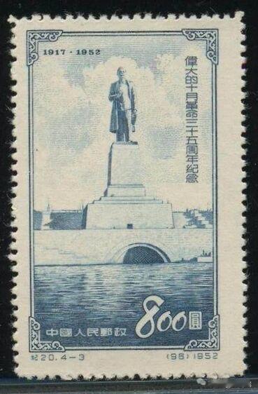 纪20《伟大的十月革命三十五周年纪念》邮票是中华人民共和国邮电部为纪念十月革命35周年,于 1953年10月5日 正式发行的纪念邮票。这套邮票因其背后的“撤改”风波而成为新中国集邮史上的著名珍邮。 1. 邮票基本信息 志号:纪20 全套枚数:4枚 设计者:孙传哲 印刷工艺:雕刻版,由北京人民印刷厂营业分厂印制 面值:每枚均为旧人民币 800 圆 图案内容: (1) 中苏友好:图案为毛泽东与斯大林在克里姆林宫塔楼上。 (2) 十月革命历史:图案为列宁在全俄苏维埃第二次代表大会上讲话。 (3) 共产主义建设:图案为列宁运河入口处的斯大林像。 (4) 斯大林和平政策:图案为斯大林在演说。 2. 著名的“撤消发行”事件 这套邮票最著名的特征是其曾因名称错误而紧急撤回: 错误原因:原定名称为《伟大的苏联十月革命三十五周年纪念》。但在发行前夕发现,1917年发生十月革命时苏联尚未成立(苏联成立于1922年),因此在“十月革命”前冠以“苏联”字样不符合历史事实。 停售与改版:邮电部于原定发行日(1953年2月14日)前夕发出急电停售,并重新印制了删去“苏联”二字的新票。 珍邮由来:由于湖南衡阳等地邮局未及时接到或执行停售指令,导致少量带“苏联”字样的错版邮票流出并售出。这套“纪20错版票”现已成为新中国著名的珍邮,在拍卖市场上价值极高。 3. 市场价值 正票:即1953年10月5日正式发行的版本,是收藏早中期纪特邮票的基础品种。 错版票:即带有“苏联”二字的未发行票,极具收藏价值。根据近期行情,一套全新的纪20错版票在拍卖会上的成交价可达 20万元人民币以上。