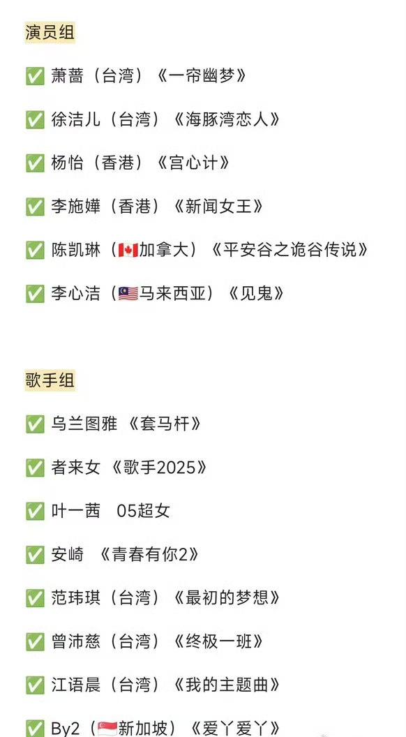 疑似浪姐完整版名单出炉了,这个嘉宾阵容确实有点无聊(=_=)了。 内娱演员这块,最大咖居然是李小冉,其他都是些有知名度,但没什么看点的三线女演员。 港台的演员还比较拿得出手,除了陈凯琳是靠老公的关系混进来的,其她几位都是实打实有爆剧代表作的。 歌手组也是一片暗淡,要星光没星光,要热度没热度,也就靠范玮琪拉点话题度了。 其他组这几位还不错,都挺有看点的。 尤其是王濛,很期待她的初舞台,此处强烈艾特黎明来看。[笑哭][笑哭] 浪姐7名单 浪姐7阵容