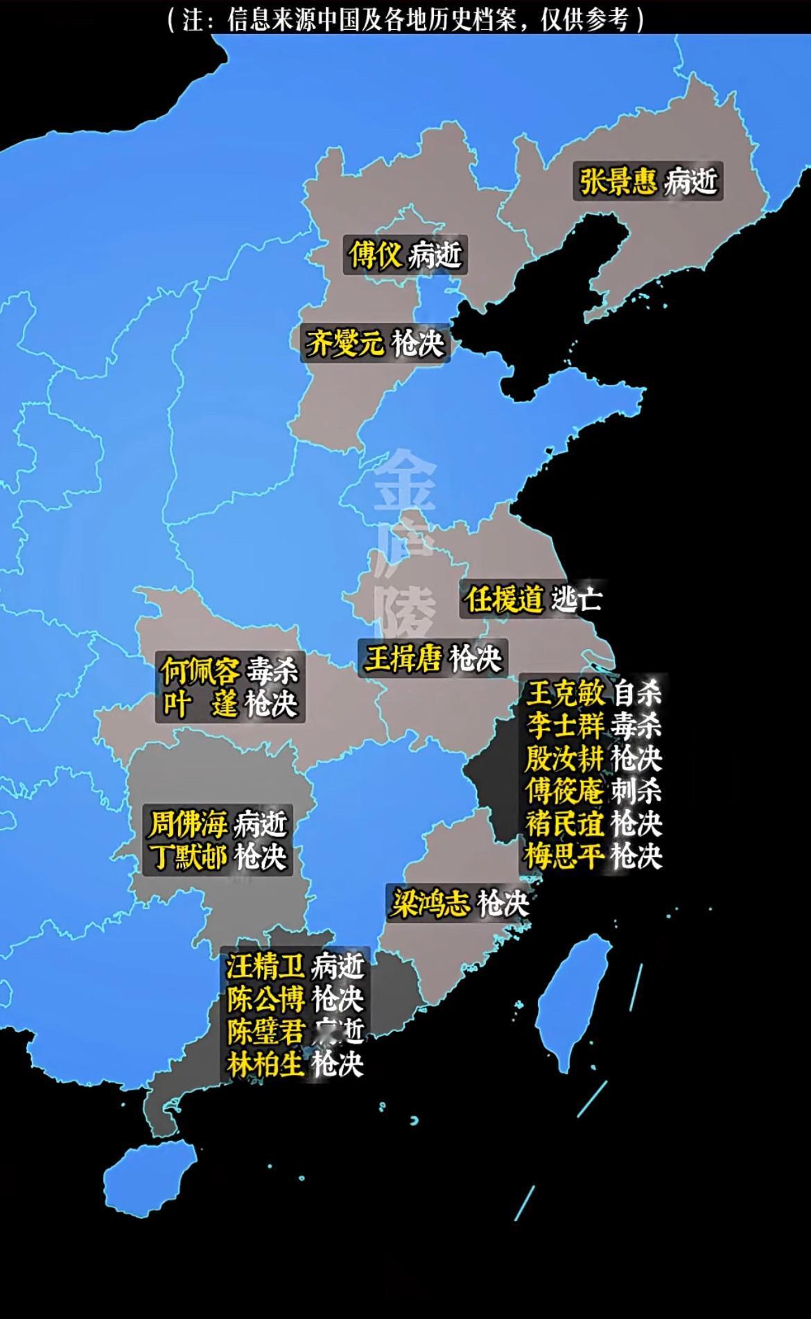 一张图看明白近现代20位大汉奸的下场。 汉奸