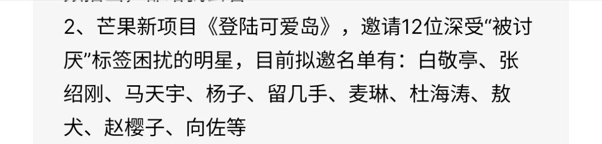 从2023年底招商《逃出讨厌岛》到2024年底改名《登陆可爱岛》到2025年底改名《有勇气来岛》刘乐团队这节目3年招商出现了6次,到2026年,最后不做了……找12个大家公认讨厌的明星,比如张大大、赵樱子、杨子、张绍刚之类的,大家想看。最后做不下去。结束。