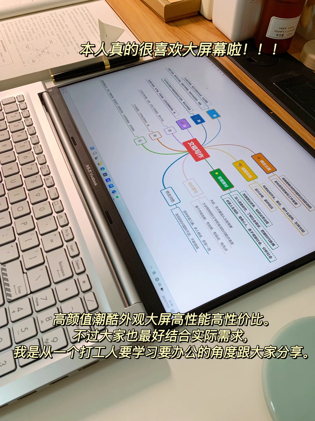 最近也有很多姐妹问我上班族,又要学习、班后还可能要干活用什么笔记本电脑好?我的回答都是:绝对是华硕无畏16 2023 16英寸大屏高能轻薄本啦。我跟体制内朋友都换了这款,因为都有很多学习和工作任务,所以优先考虑实用性。用了它一段时间,我才敢分享给大家——这款笔记本是13代英特尔酷睿标压i5处理器,日常使用很丝滑,运行多个软件也不会卡顿!屏幕好、尺寸大、2.5K高分辨率、144Hz高刷新率,能够满足我们日常学习办公,看纪录片、写笔记修图校色等,而且高颜值潮酷外观大屏高性能高性价比。不过大家也最好结合实际需求,我是从一个打工人要学习要办公的角度跟大家分享。