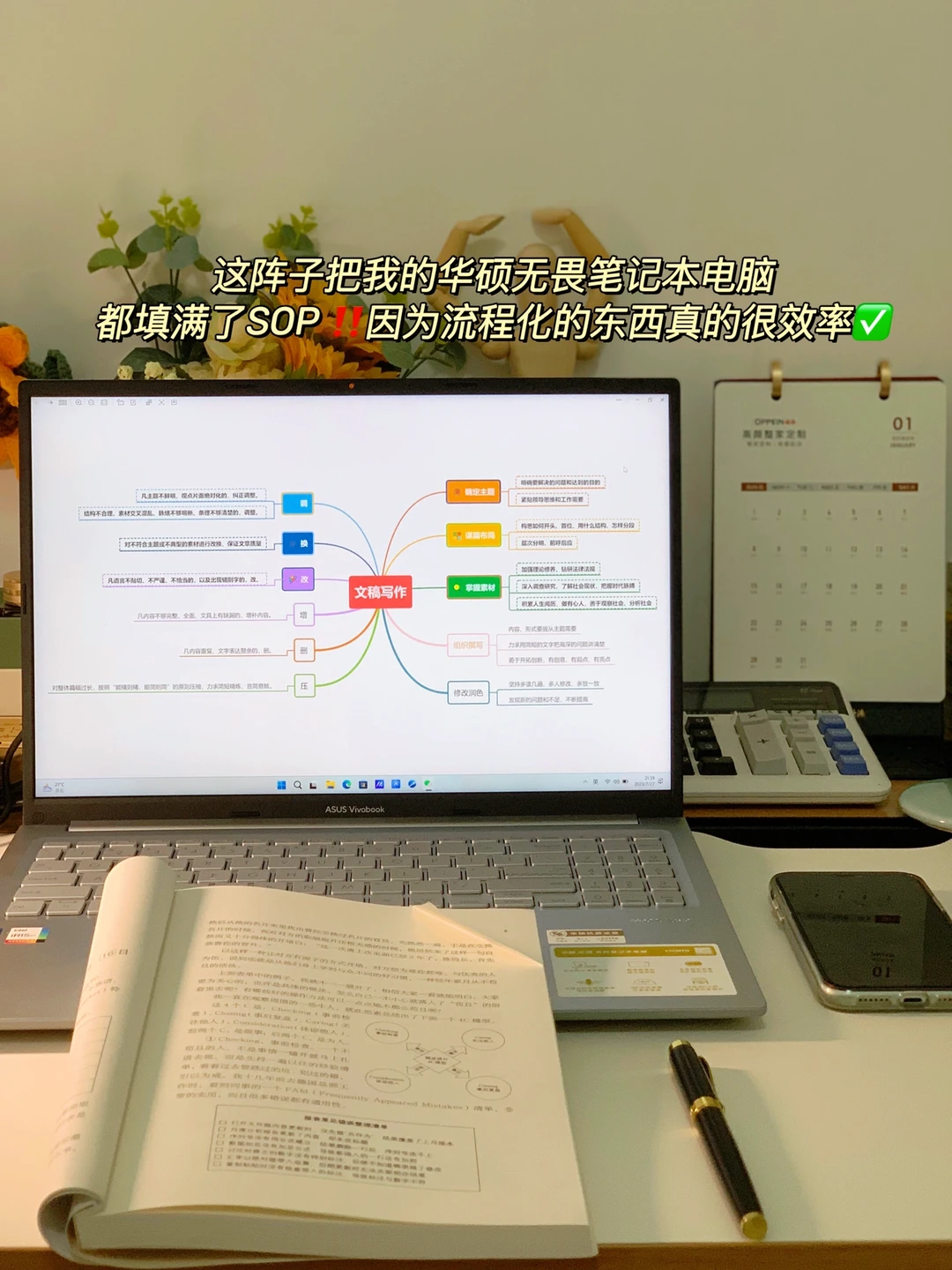 她说:应对事务性工作,一定一定要准备多套SOP,把复杂冗的事务性工作总结成流程公式,就像工厂车间流水线,哪个环节装哪个零件,不用大脑二次思考,碰到相关工作就套公式,这些占用大量时间事务性起码能节约一半时间。她又带我到她房间,我看到她华硕无畏笔记本电脑里有个文件夹专门命名为:SOP,都是一些事务性工作流程表。让我眼前一亮,恍然大悟:哦,原来工作还可以这样做?原来时间还可以这样省??我还开玩笑说,同样用的是华硕无畏,你的无畏简直用到太极致!