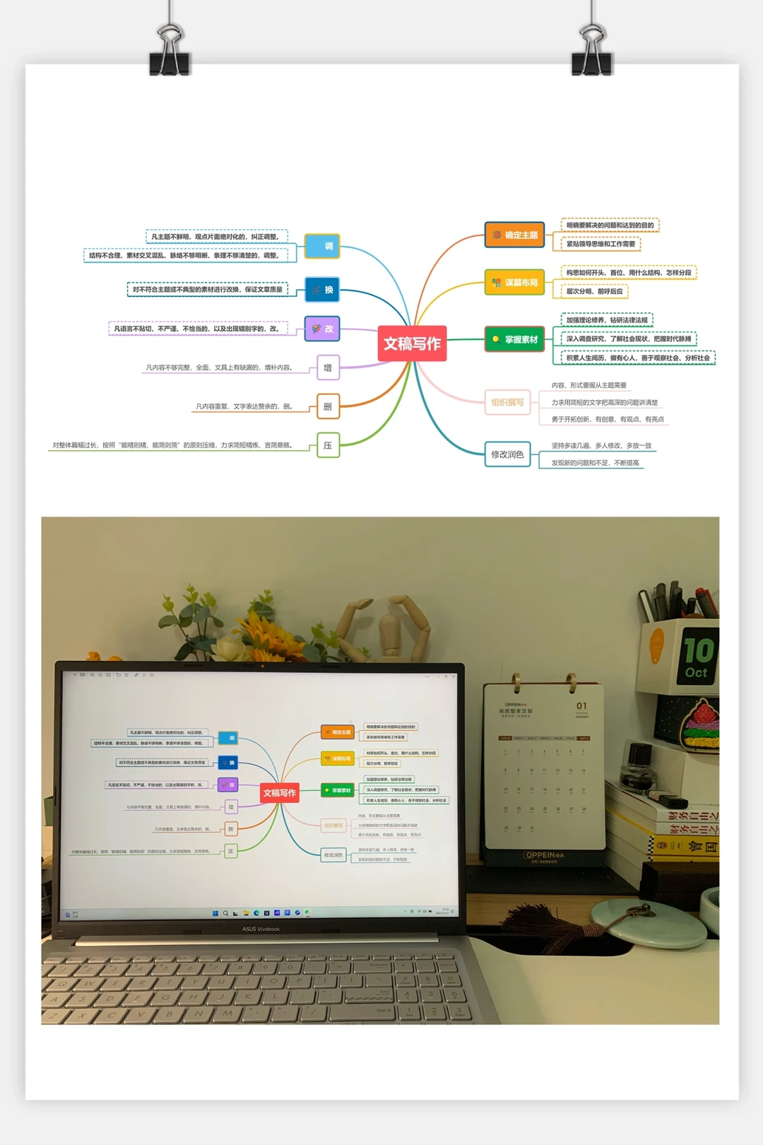 文稿写作一般五大点6小点,确定主题、谋篇布局、掌握素材、组织撰写、修改润色,见图