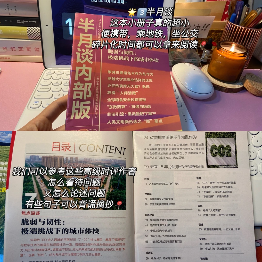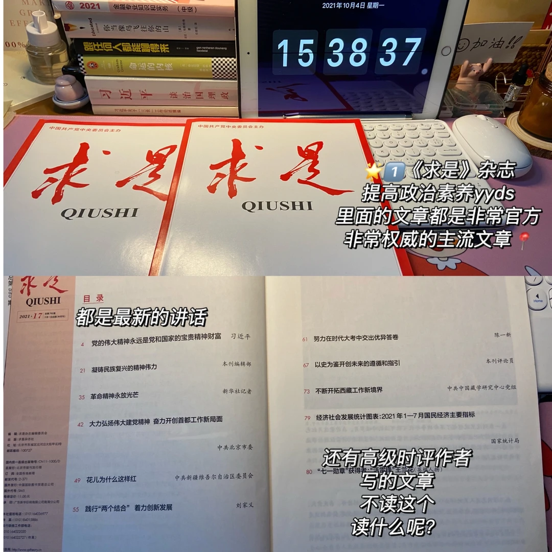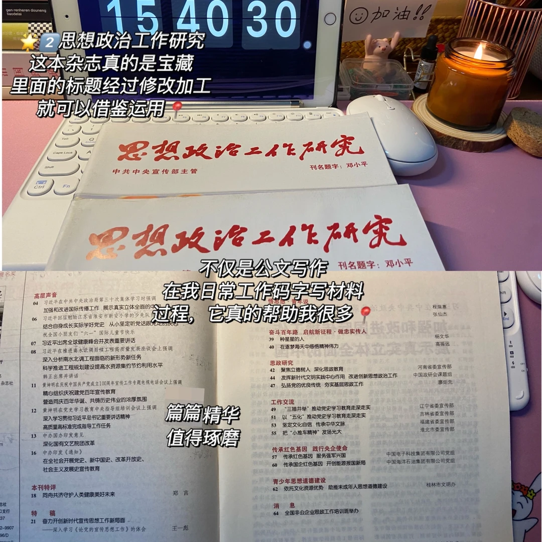 🌟我看不下厚厚的指导性书籍,常常以容易获取的杂志作为学习的好伙伴。《求是》《思想政治工作研究》《半月谈》《各类纸质报纸》。其实当我看到一堆含金量超高的书籍被堆放在角落无人利用,确实为它们感到些许落寞。所以我充分利用了。