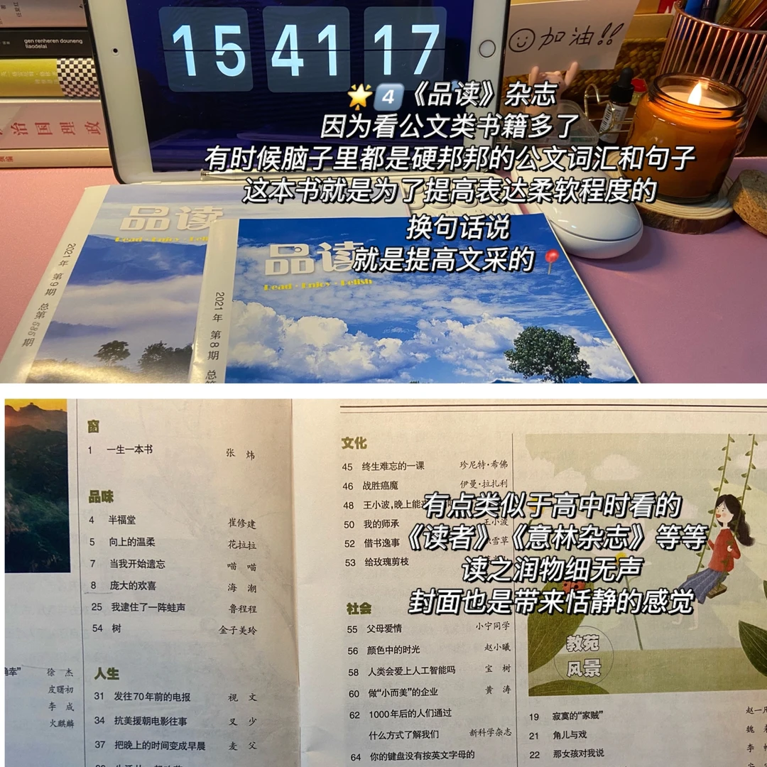 🌟而且,我还发现经常看这些杂志带给我的好处就是,它治愈了我容易焦虑的情绪。我是个没办法停下来的人,忙碌使我心安。当我觉得内在缺少点什么的时候,我就翻翻杂志,发现浮躁的心灵得到抚慰,迷茫的情绪得到安抚,然后我开始相信未来的力量。