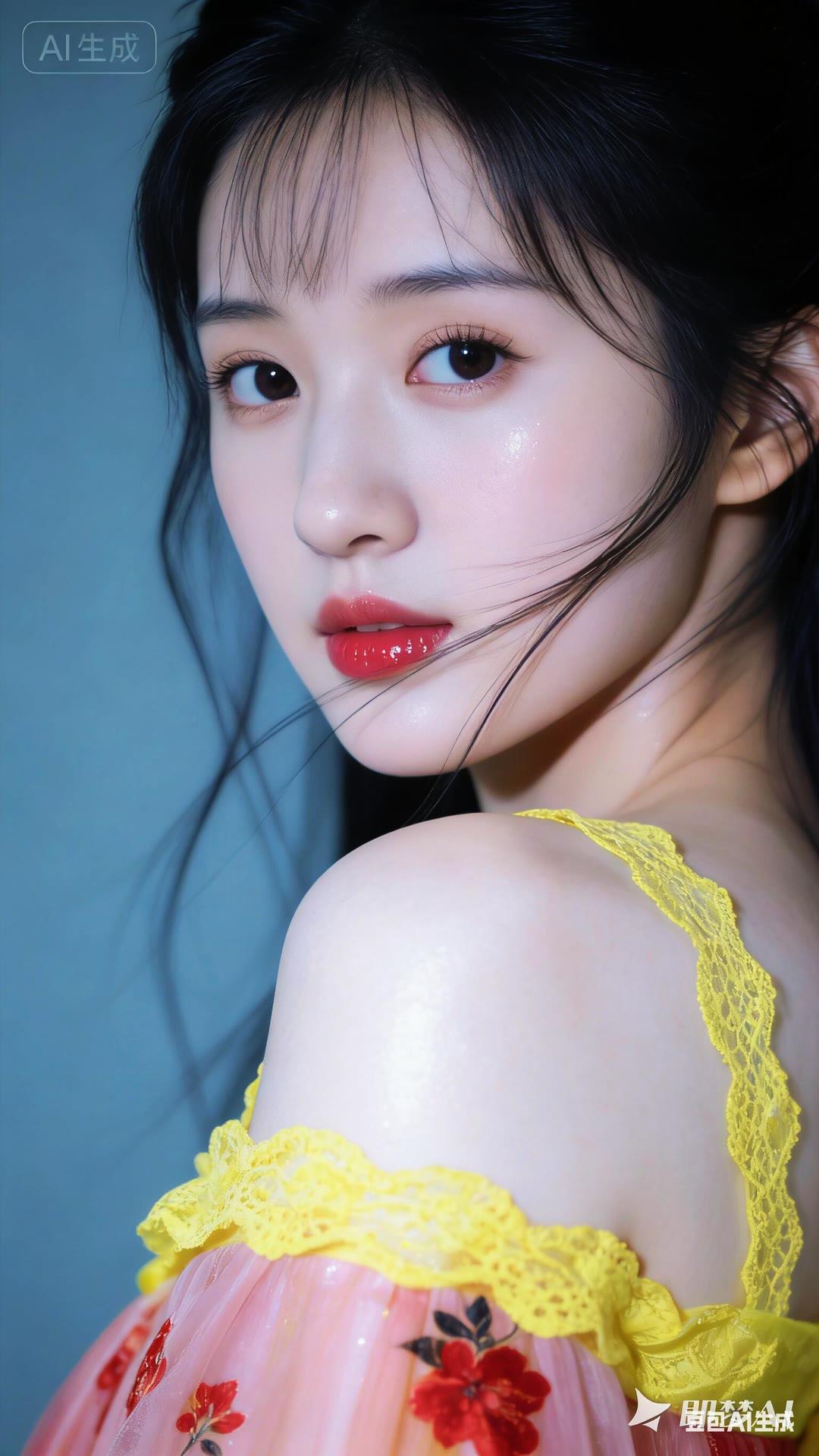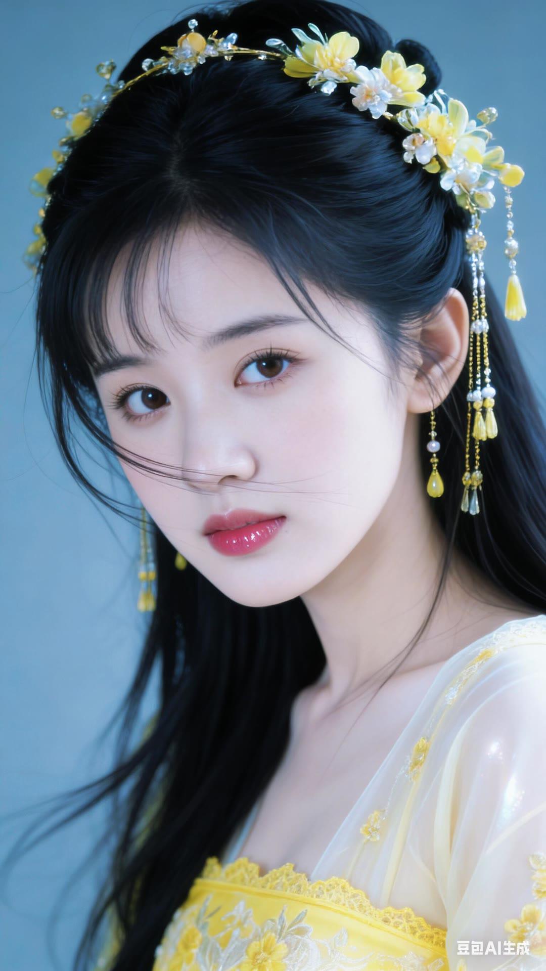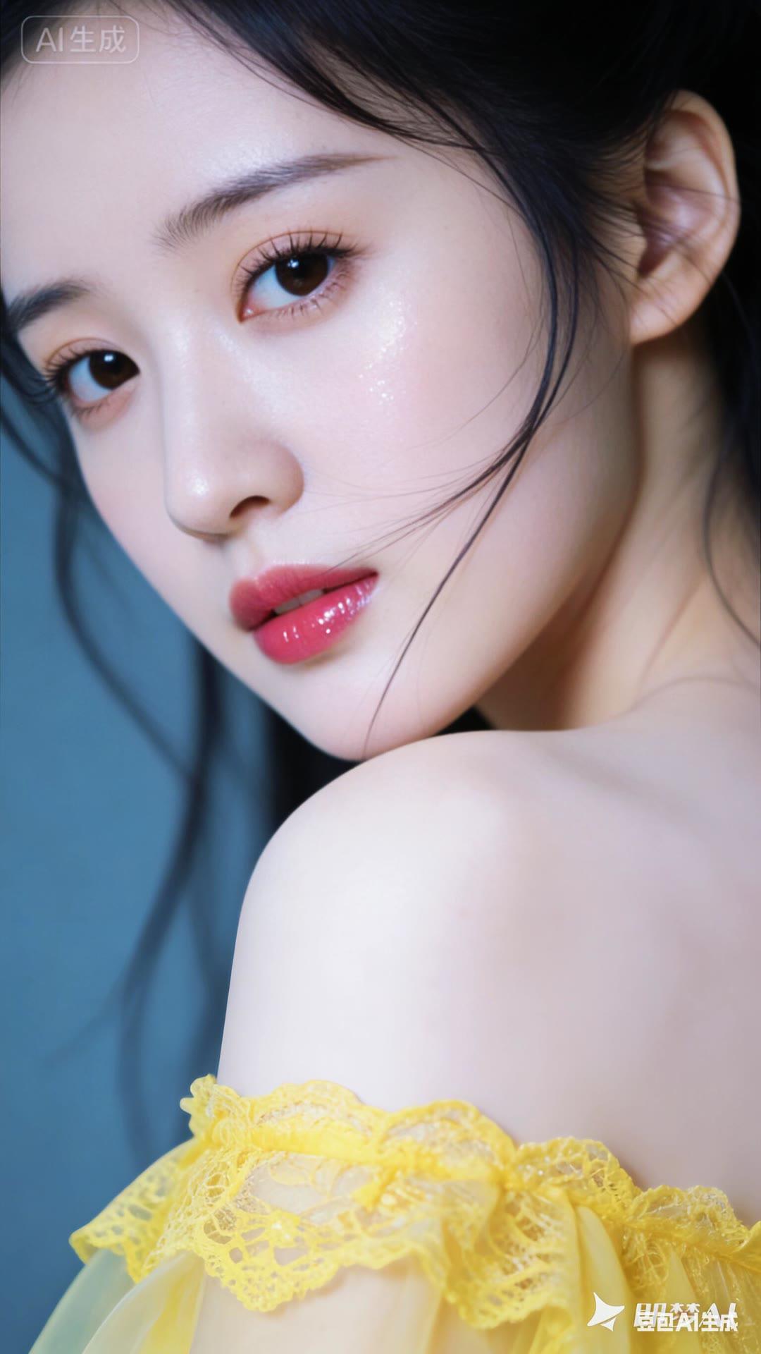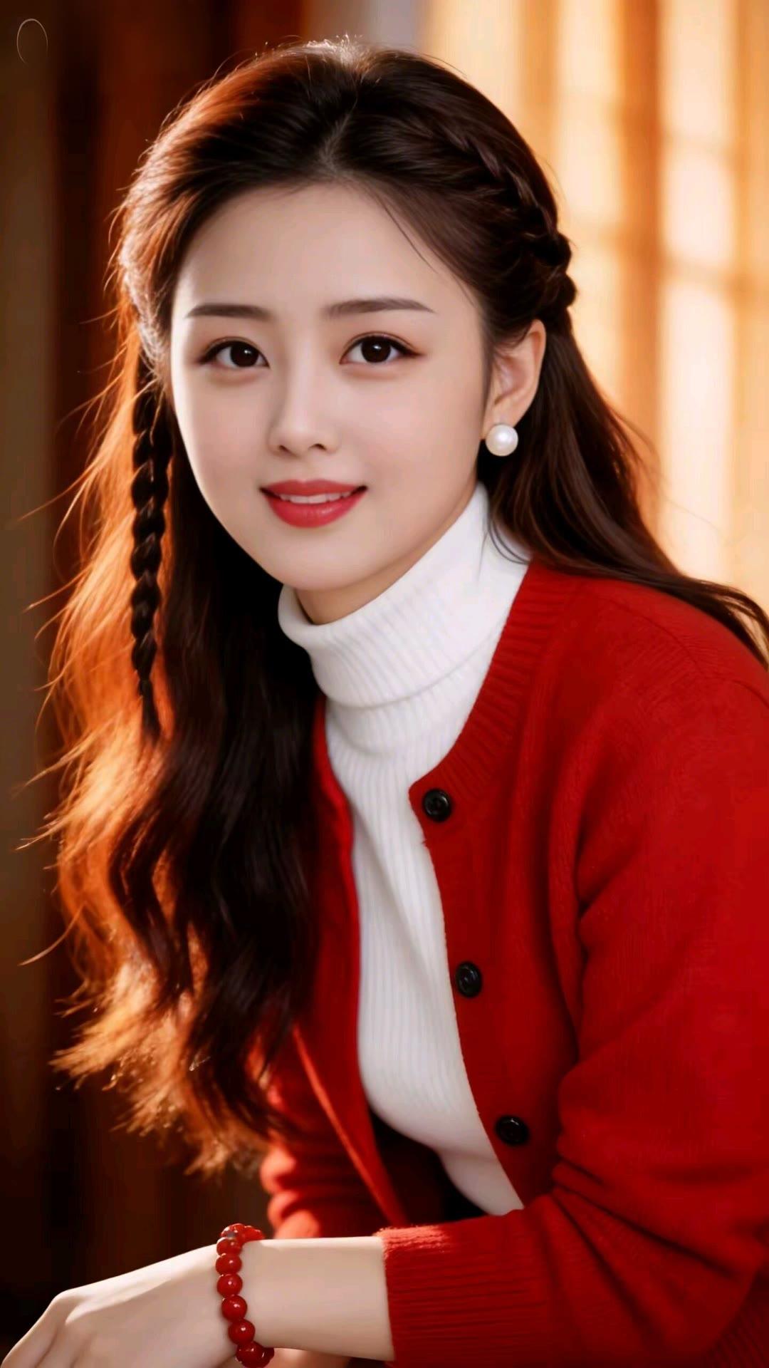 温柔甜美的冬日穿搭,暖黄色毛衣搭配白色高领衫,红发辫点缀,尽显优雅气质。