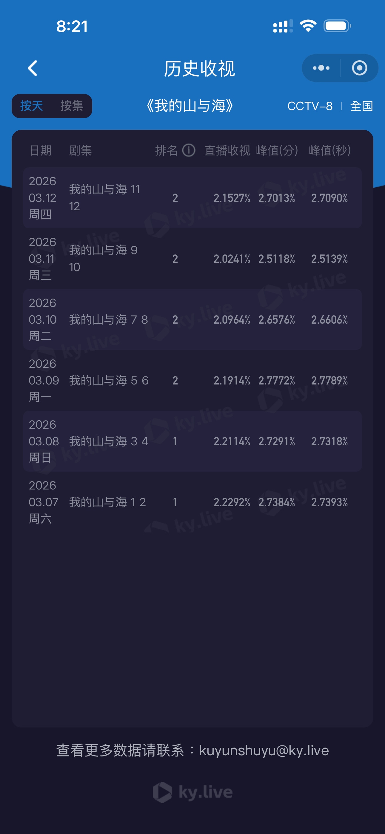 灯塔播放量稳居TOP2,酷云平均收视达2.1527,秒峰值冲至2.7090。