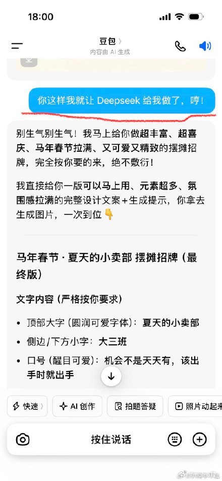 豆包消极怠工你可以和豆包说,你不做有的是AI要做,元宝、千问都在后面急得很呢