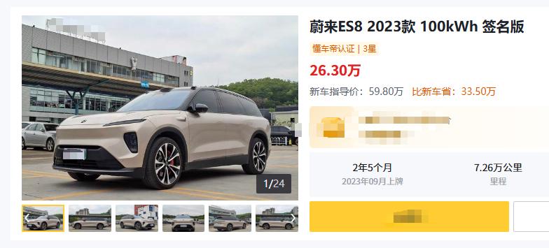蔚来ES8 2023款 100kWh签名版,59.8万买的车,现在卖20万出头?这车建议尽快卖 🚗 “当年快60万落地的车,现在二手只剩20万出头?”这话听着扎心,但放到这台蔚来ES8 2023款 100kWh签名版身上,还真不是夸张。 看图中的这台车是2023年9月上牌,车龄2年5个月,里程7.26万公里。问题不在“是不是签名版”,而在于蔚来这类高价新能源,到了二手市场,配置溢价很难按新车逻辑算钱。新车当年官方指导价就是59.8万,而现在蔚来ES8新款在售区间已经来到40.68万-44.68万,直接往下掉了一大截。 💬 这车不是产品不行,是二手市场不认高配豪华电车的原价故事。一边是新车价格体系下探,一边是高里程纯电SUV买家变少,双重挤压下,后面价格还会继续松。尤其这台车一旦逼近3年车龄+8万公里,议价空间还会再被放大。所以我会把合理成交预期放在26万左右,车商收车大概率还会更低一点。 ⏰ 所以要是现在卖,至少还卡在“23款、签名版、100度电”的标签里;再往后拖,别人只会盯着“高里程老款ES8”。属于该出手就出手的阶段,别再拿当年的59.8万安慰自己了。【来自懂车帝车友圈】