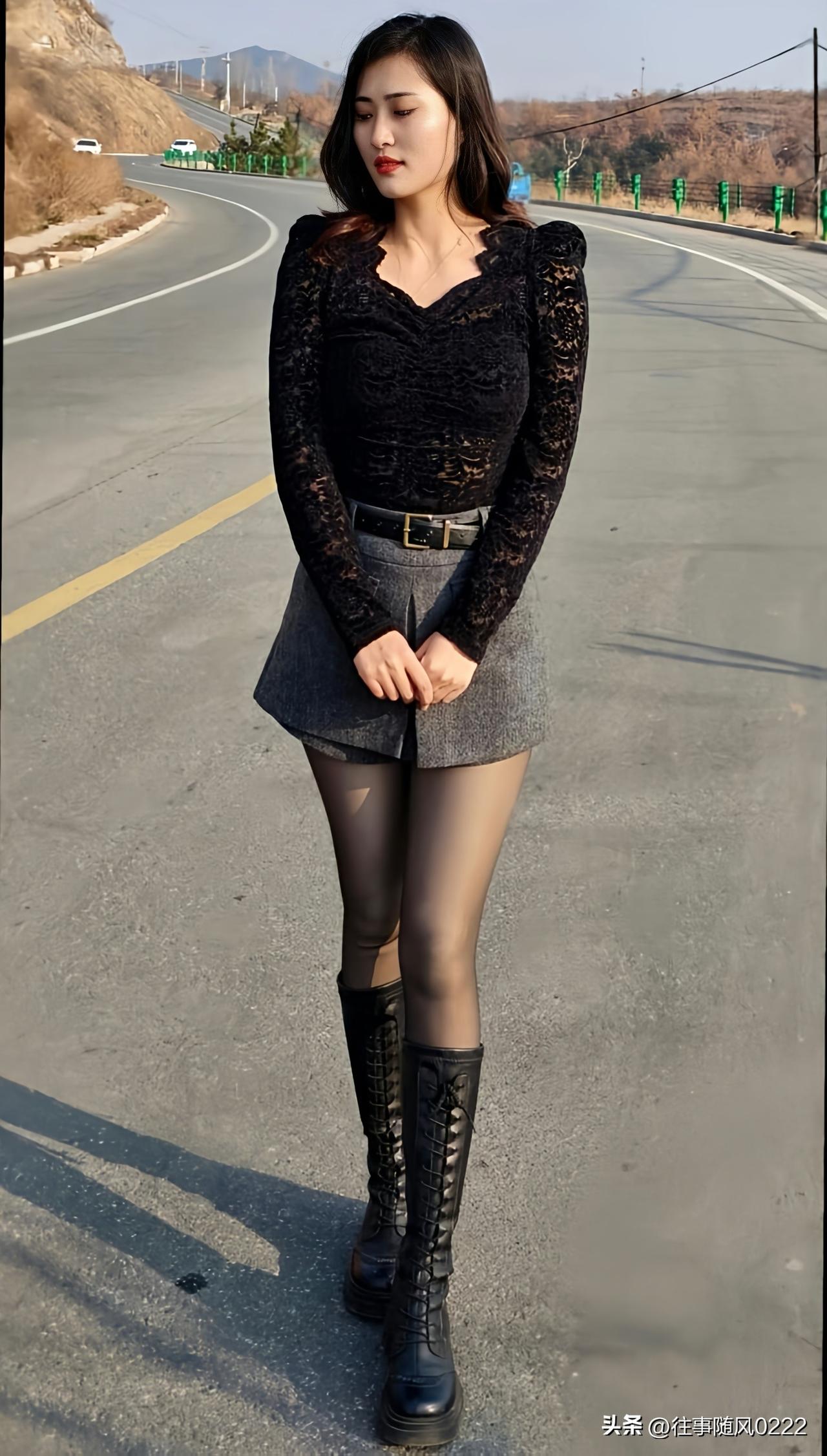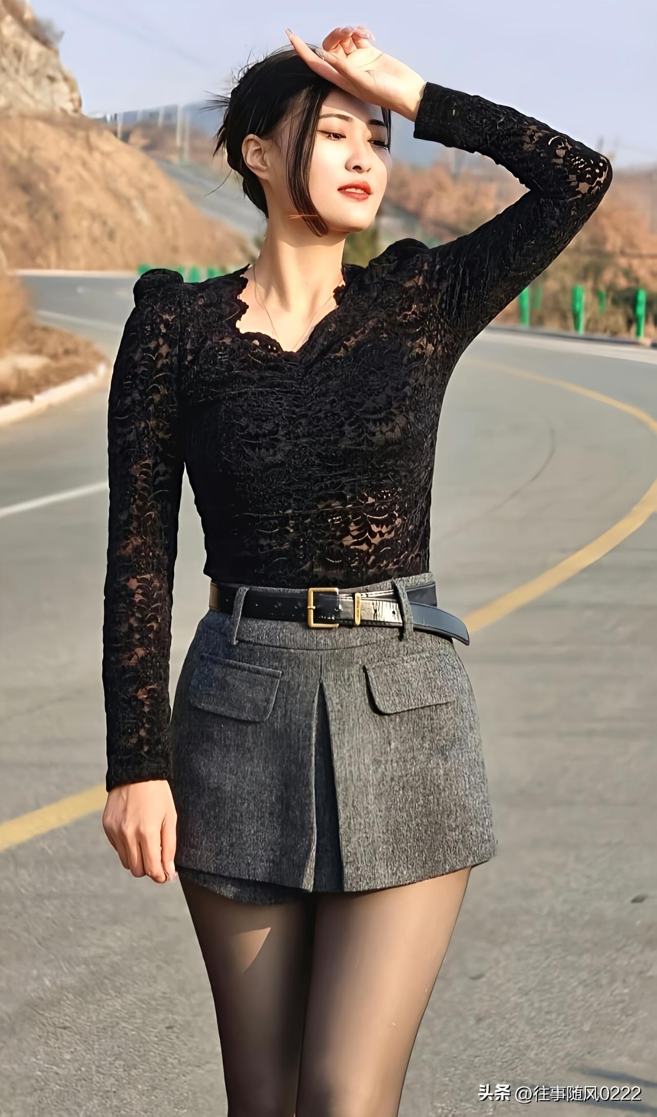优雅黑纱衫,时尚短裙,自信女神风范