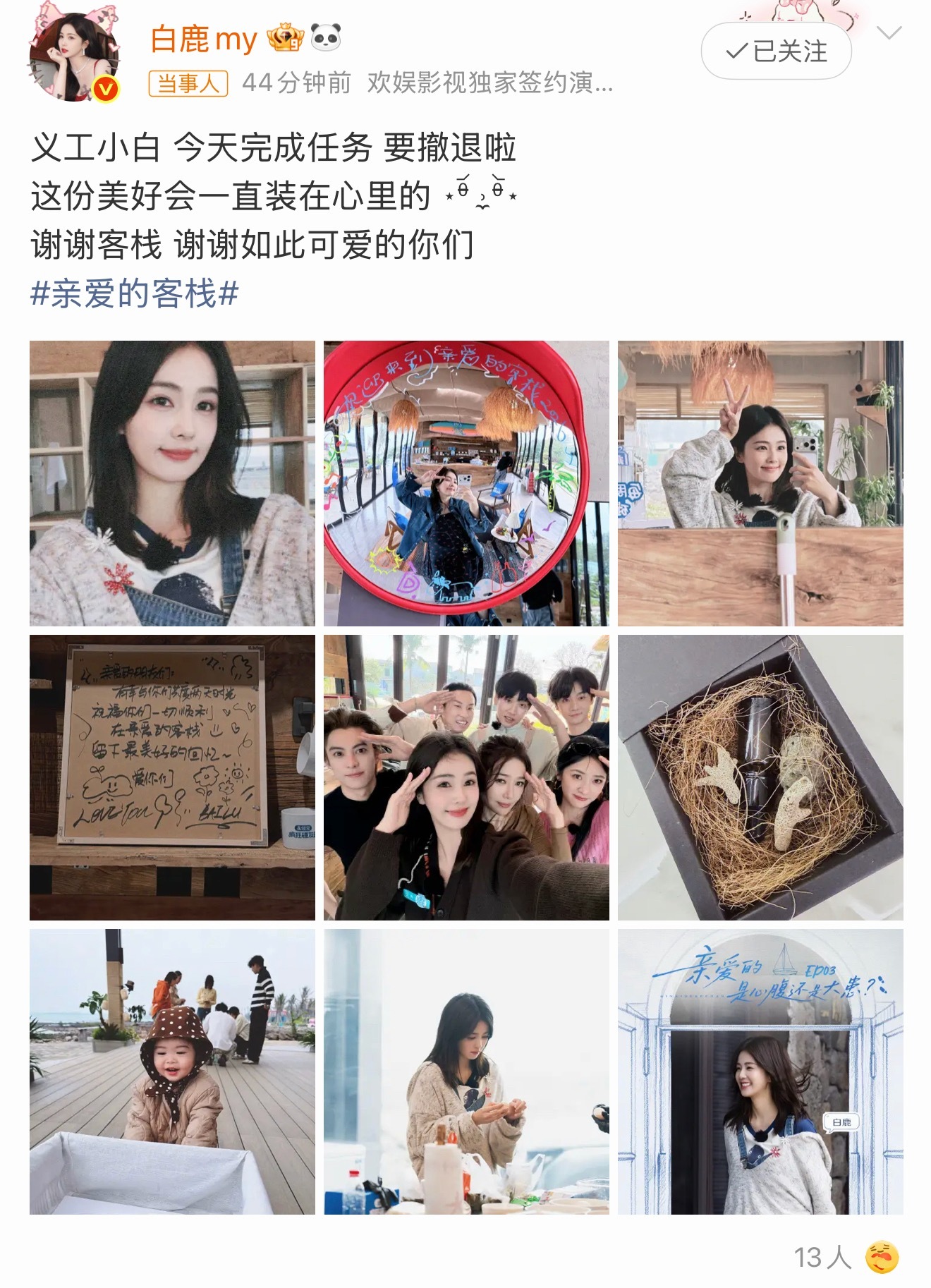 白鹿谢谢客栈白鹿:义工小白今天完成任务要撤退啦,这份美好会一直装在心里的 ⋆ᶿ̵᷄ ˒̼ ᶿ̵᷅⋆ ,谢谢客栈 谢谢如此可爱的你们~亲爱的客栈