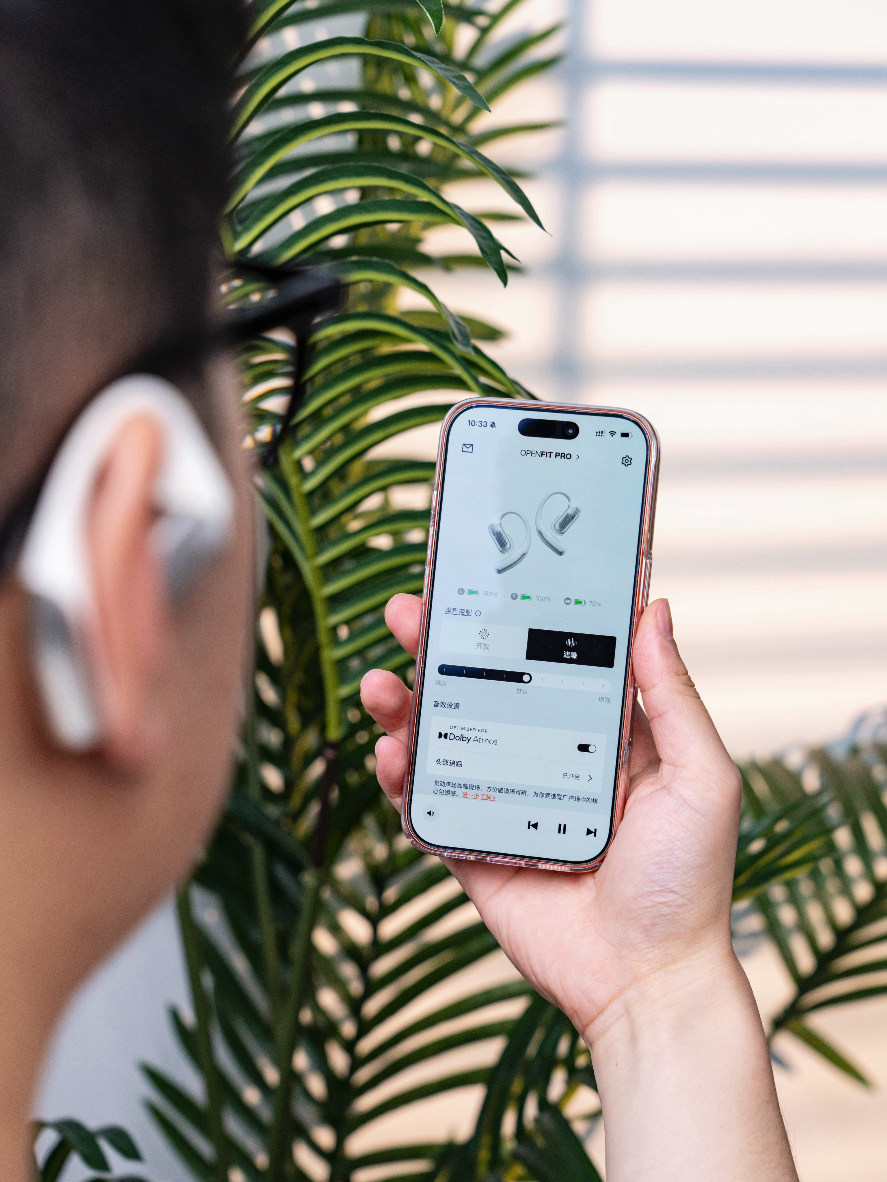 亮点是支持降噪的开放式耳机,不过叫是「滤噪」,顾名思义就是过滤掉了一些噪音。对于低频噪音过滤效果非常明显。