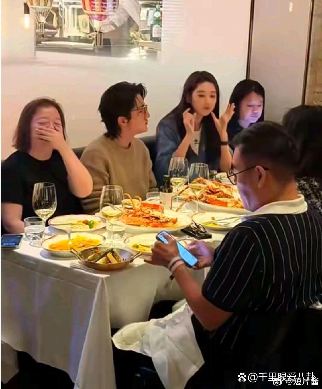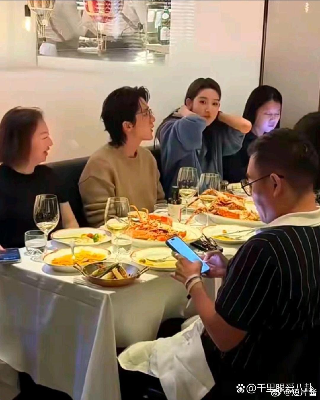 张新成带父母与王玉雯聚餐,挨着王姐坐歪头看她手机,家属感十足