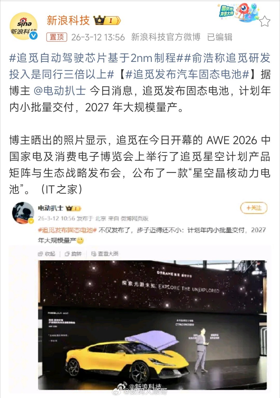 追觅发布汽车固态电池从吸尘器跨界到造车、造芯、造电池,追觅这跨度真不是一般大~