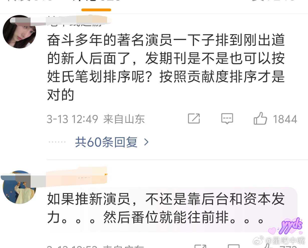 广电总局将公布演员番位规则“总的原则是,以演员真实姓名的姓氏笔画为序”!没啥用!也没啥意义!治标不治本!粉圈拉表还是存在番位顺序的!