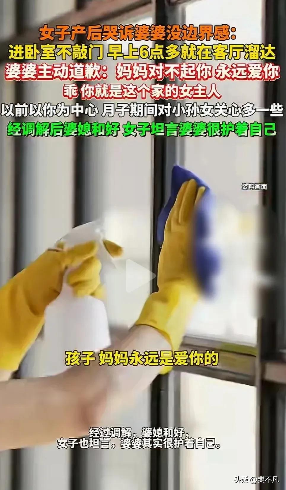 河南洛阳,女子月子里向老公哭诉,婆婆不尊重自己隐私,每天6点就在客厅溜达,自己没法休息,要得产后抑郁了!婆婆知道后表示,我在打扫卫生,不是溜达。最后女子丈夫的做法,万万没想到。 备注:真实事件,以第一人称表述 我是在凌晨四点喂完最后一次奶,才迷迷糊糊睡着的。 孩子刚满两周,每天晚上要醒三四次。喂奶、拍嗝、换尿布,一套下来个把小时,刚躺下,下一轮又开始了。 说实话,我已经记不清连续多少天没睡过一个整觉了。 涨奶疼得我直冒冷汗,腰跟断了似的,整个人像被掏空了一样。但最折磨人的还不是这些,是我婆婆。 每天凌晨六点,准时。 客厅里就开始有动静了。脚步声、开门声、扫地的声音,有时候还能听见她哼小曲儿。 我躺在那,眼睛睁着,盯着天花板,听着那些声音,想睡又睡不着,不睡又困得要死。 一天两天我忍了,三天四天我快疯了。 这还不算完。 我婆婆进我们卧室从来不敲门。好几次我衣服还没穿好,门就开了。产后身材走样成啥样我自己都不敢看,就这么直愣愣暴露在她面前。 她倒是没什么反应,可我恨不得钻地缝里。 我知道她是来帮忙的,知道她疼孩子,知道她勤快。可我实在憋不住了。 那天早上六点,客厅的脚步声又响起来的时候,我蒙着被子哭了。 老公问我咋了,我哇的一声哭出来 我老公那天看我脸色不对,小心翼翼地问:媳妇,你咋了?是不是哪不舒服? 我本来想说没事,可话到嘴边,眼泪先下来了。 我憋了这么多天,终于把那些委屈全倒了出来——六点被吵醒、进卧室不敲门、产后身材被看见、感觉自己像个透明的。 我一边说一边哭,哭得上气不接下气。 我老公听完,没说话,就坐那听着。等我哭完了,他说了一句:你先躺会儿,我去跟我妈聊聊。 说完他轻轻关上门出去了。 我当时心里其实是有点忐忑的。我怕他一开口就跟他妈吵起来,也怕他反过来劝我“我妈就那样,你多担待”。 但我实在没力气想了,就躺那发呆。 客厅里,我婆婆正抱着孙女逗着玩。 我老公走过去,坐下,把我说的话一五一十跟她说了。 我后来才知道,婆婆听完沉默了好一会儿。 然后她说:“我每天早上六点起来,不是溜达,是在打扫卫生。可能动静太大了,影响她休息了,以后我小点声。” “我这段时间心思都放在孙女身上了,忘了我儿媳妇刚生完孩子,身体虚,心思也敏感。这事是我想得不周全。” “进卧室不敲门这事,换成我也受不了。以后我一定敲门,她同意了我再进。” 我老公后来说,他妈说这些话的时候,语气特别平和,没有一句反驳,没有一句“我当年如何”,也没有一句“我这都是为了你们好”。 她就这么认了。 然后她敲了敲门,进来了。 我躺在床上,看见她走进来,心里还有点慌,不知道她要说什么。 她坐到我床边,拉住我的手,说了一句话,让我又哭了: “闺女,妈做得不对,让你受委屈了。你是这个家的女主人,以后有啥事直接跟妈说,别憋着。” 我一下子不知道该说啥,眼泪哗哗往下掉。 她接着说:“妈妈是永远爱你的。” 那天我们聊了很久。我说了月子里那些难受的地方,她说她当年坐月子也是这么熬过来的,只是那时候没人管这些。我说我不怪她,她说她也年轻过,能懂。 最后我们娘俩抱在一起哭了。 后来我跟朋友聊起这事,朋友说:你婆婆这觉悟,万里挑一。 我想想还真是。 很多家庭,婆媳矛盾闹得鸡飞狗跳,不是谁坏,是没人愿意让步。 当婆婆的觉得:我起早贪黑伺候你们,你们还不满意? 当媳妇的觉得:我需要的是休息和尊重,不是你忙前忙后。 两边都有理,谁也不让谁。 但我婆婆那天做了个选择——她没跟我讲理,她跟我讲情。 她说她明白了,她说她改,她说她爱我。 这些话,比啥都有用。 但这事能圆满,最该夸的其实是我老公。 他没像有些人那样,一听媳妇吐槽自己妈,立马护犊子:“我妈来帮忙还错了?” 也没当甩手掌柜,把问题扔给我们娘俩自己解决。 他认认真真听我说完,自己去跟他妈沟通,说的话有分寸,既没指责他妈,也没敷衍我。 这种男人,才是婆媳关系里最值钱的那个“调和剂”。 现在孩子三个月了,家里比以前顺多了。 我婆婆每天早上还是六点起,但动静小得几乎听不见。进卧室之前,她会敲敲门,等我应了才进来。 有时候我抱着孩子,看着她忙里忙外的背影,心里是暖的。 我知道,她不是完美的婆婆,我也不是完美的儿媳。但我们都在学着靠近对方。 这世上,最难处的关系,有时候反而最值得处。 因为那里面,有人情味。 你家有过婆媳矛盾吗?最后怎么解决的?评论区聊聊。
