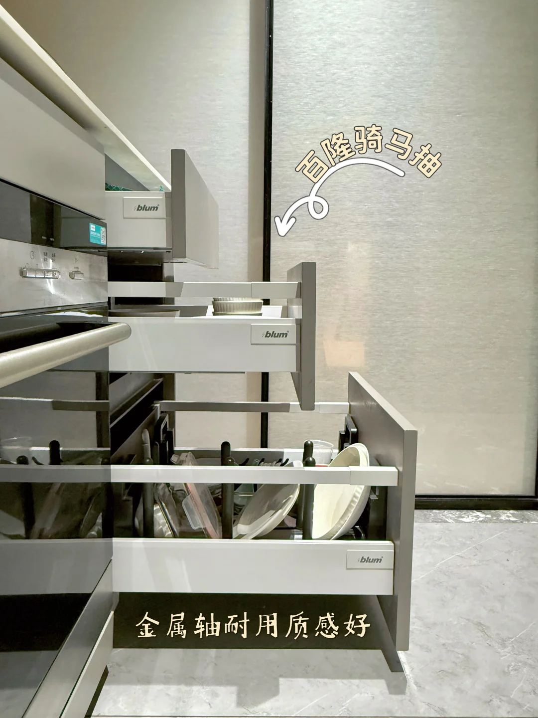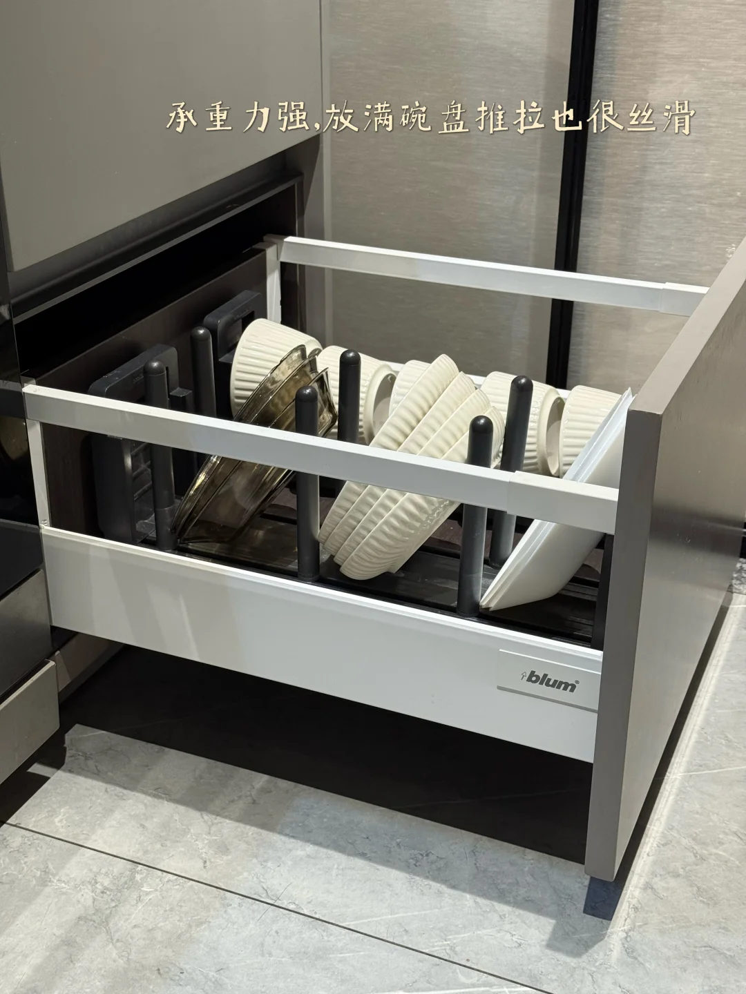 之前装出租房踩过坑,橱柜用了便宜滑轨,没多久就卡顿脱轨,碗碎一地。所以这次装修,好特别重视抽屉五金。