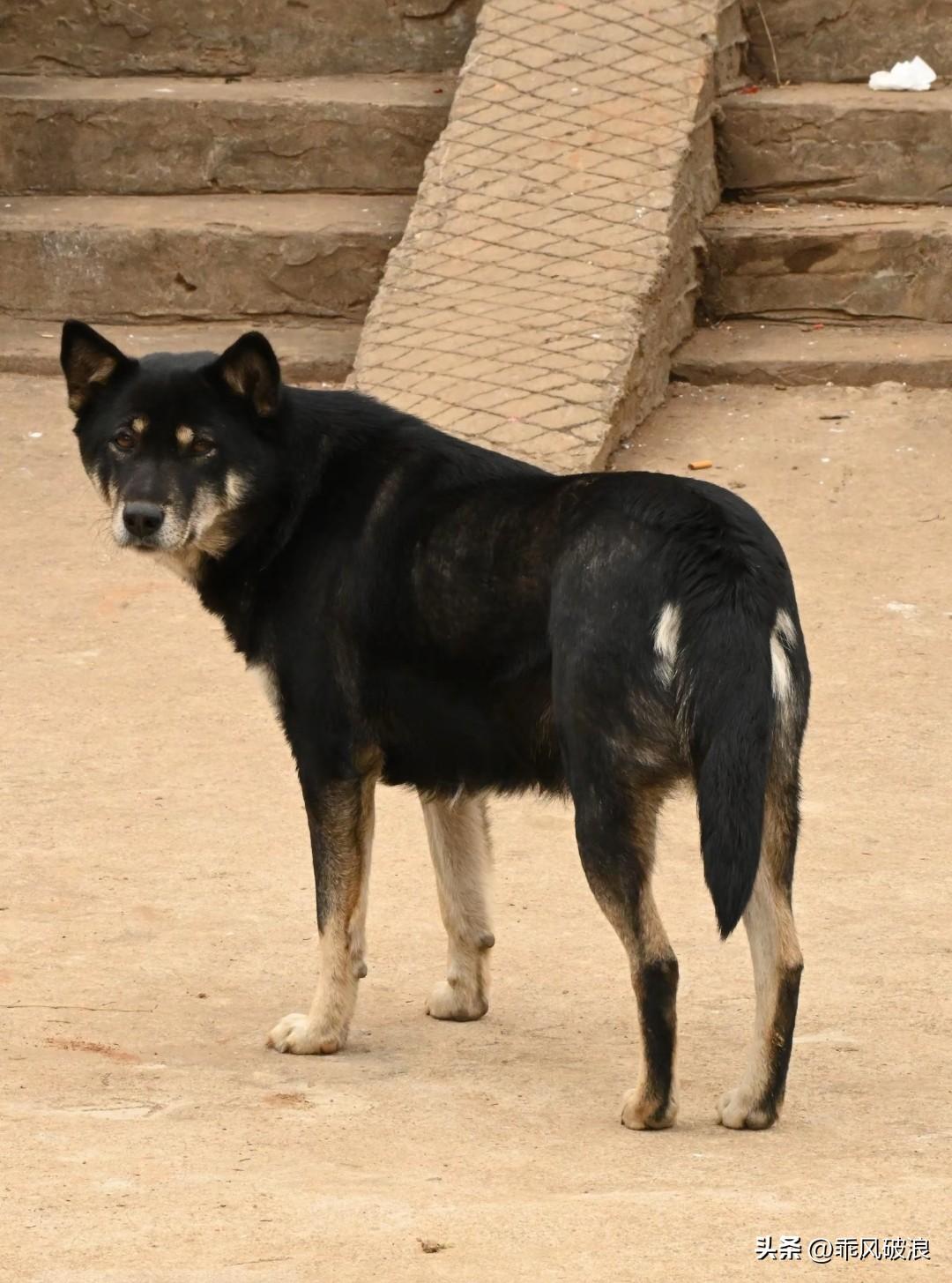 在五台山的一座寺庙里,一只流浪狗跟着游客趴在台阶上。时不时便有人伸手摸摸狗狗的头
